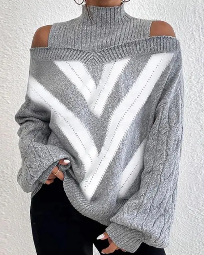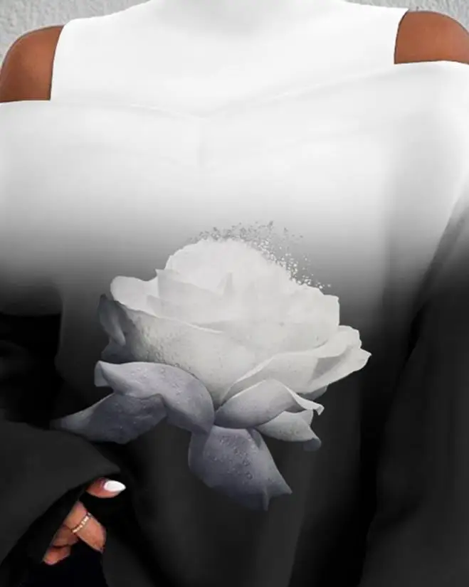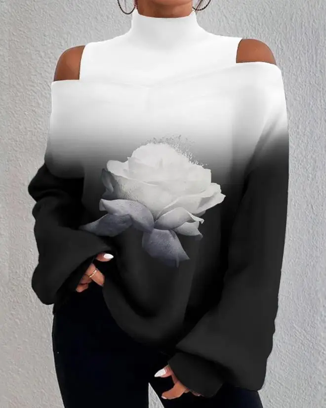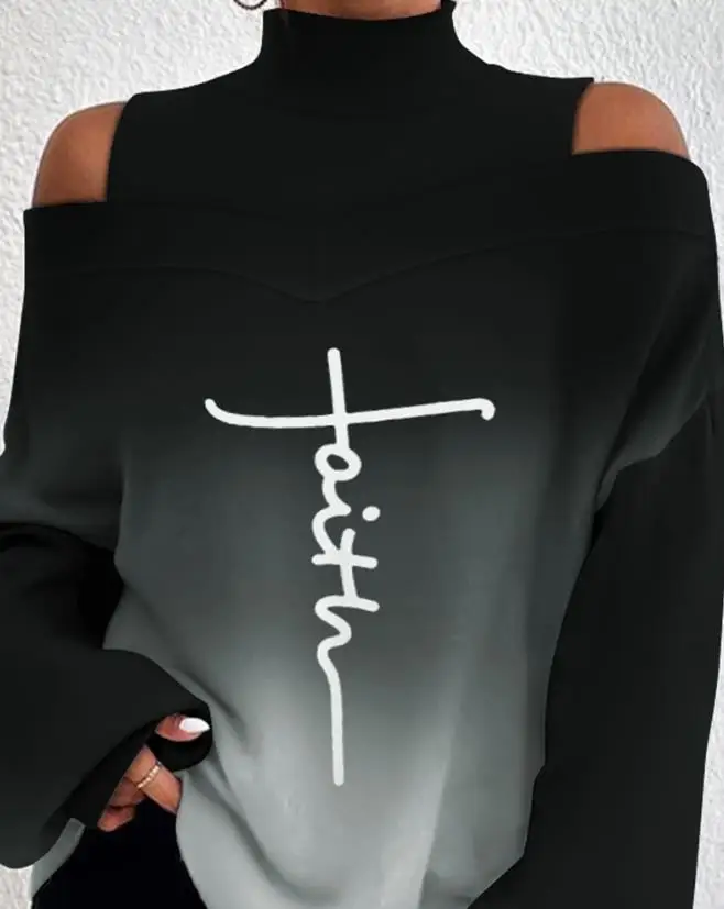 Yipinpay Woman Blouses Shirt Letter Ombre Print Cold Shoulder Lantern Sleeve Pullover Top Autumn Winter New Female Casual