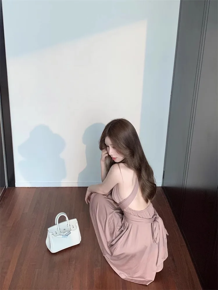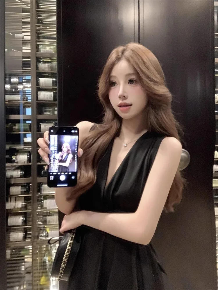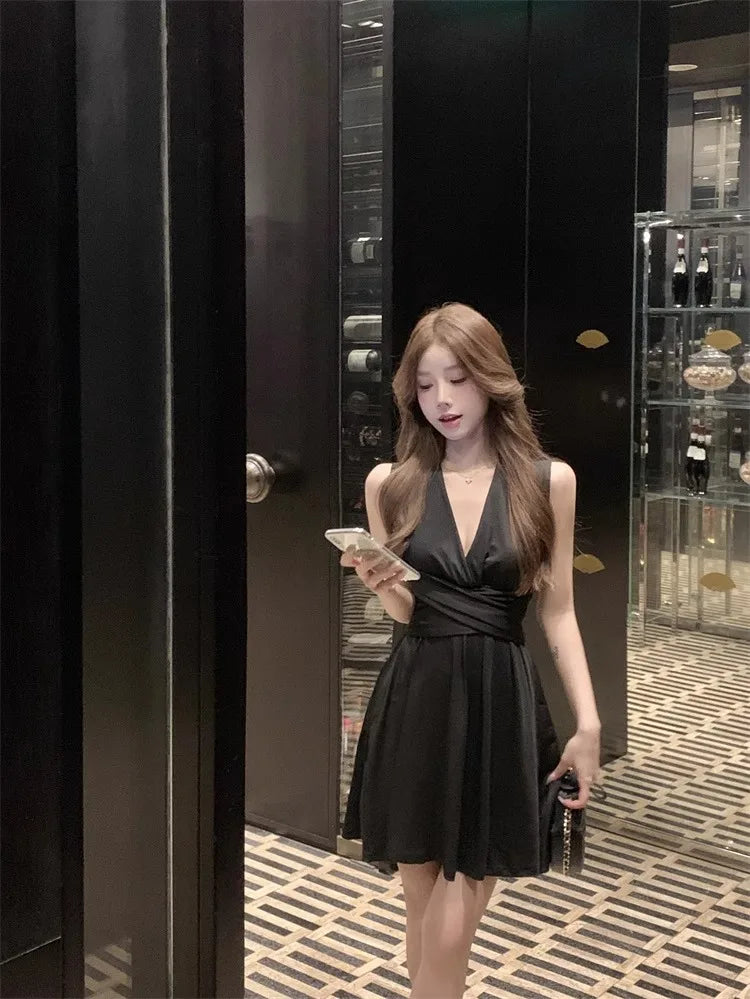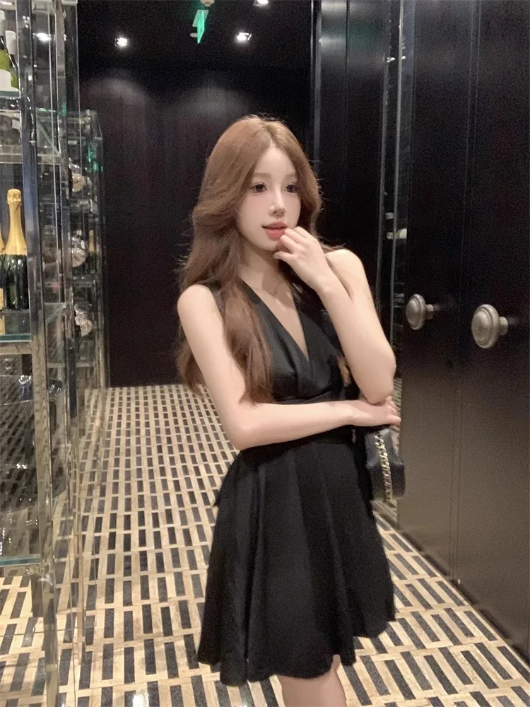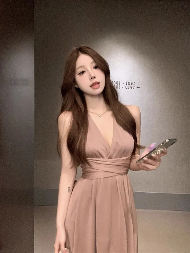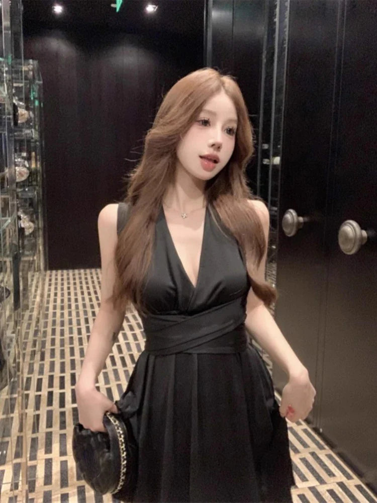 Yipinpay Woman Dress Elegant Sexy Sleeveless V Neck Backless Halter Summer New Solid Slim Party Dresses Female Fashion Chic