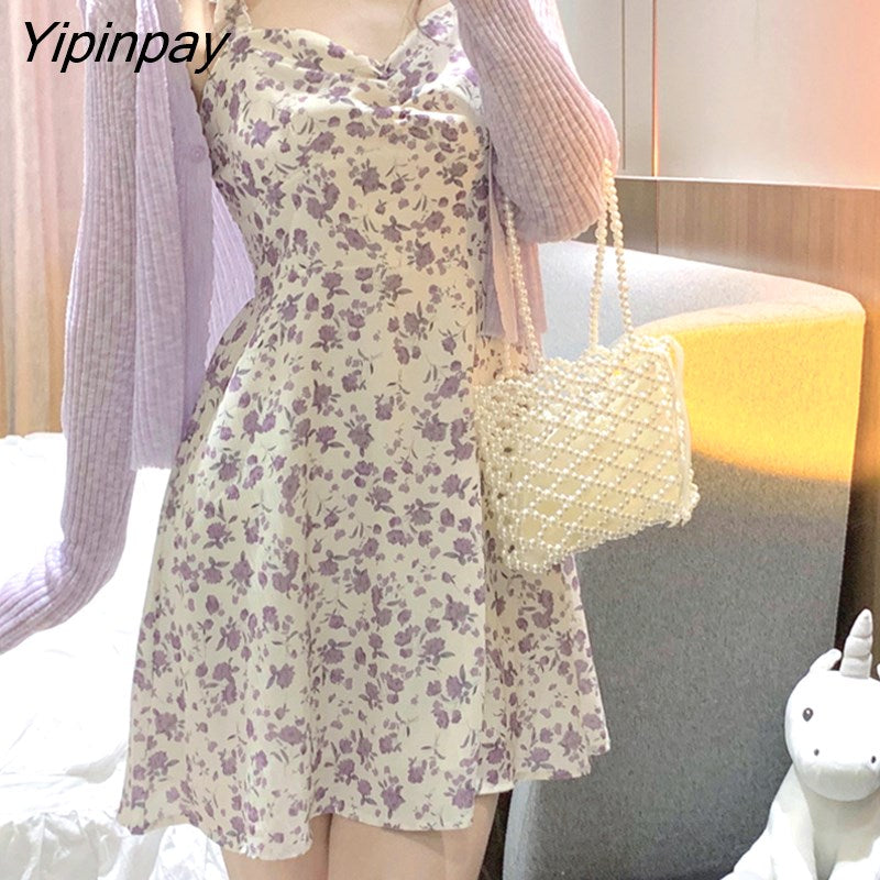 Yipinpay Woman Summer 2023 Party Sleeveless Y2k Sling Sexy Casual Aesthetic Floral Print Midi High Waist Harajuku Female Clothing