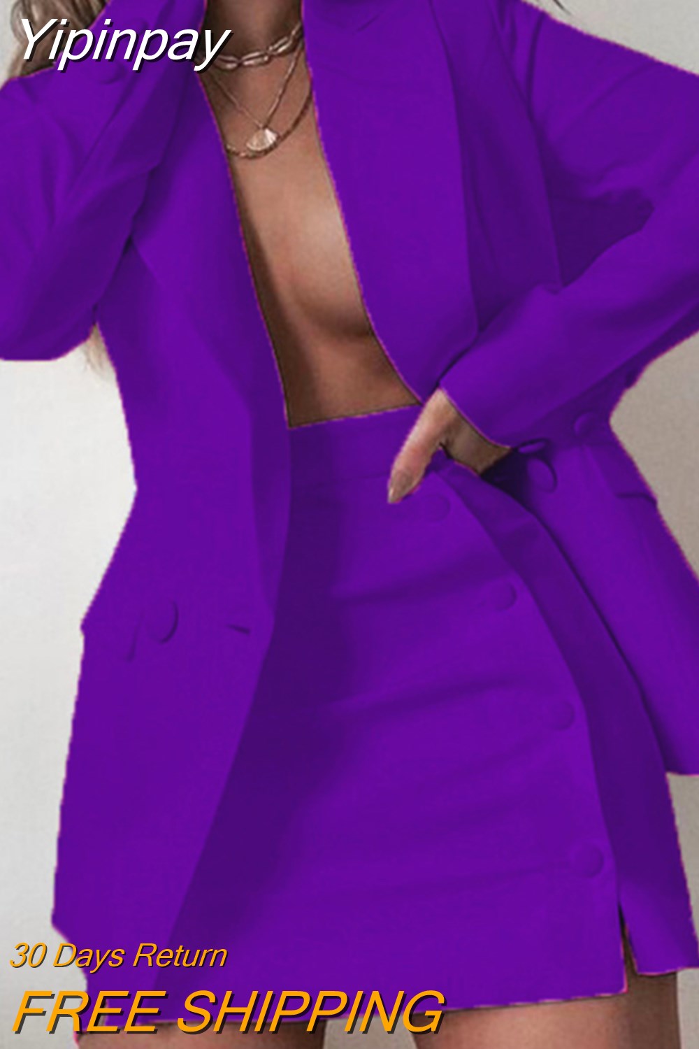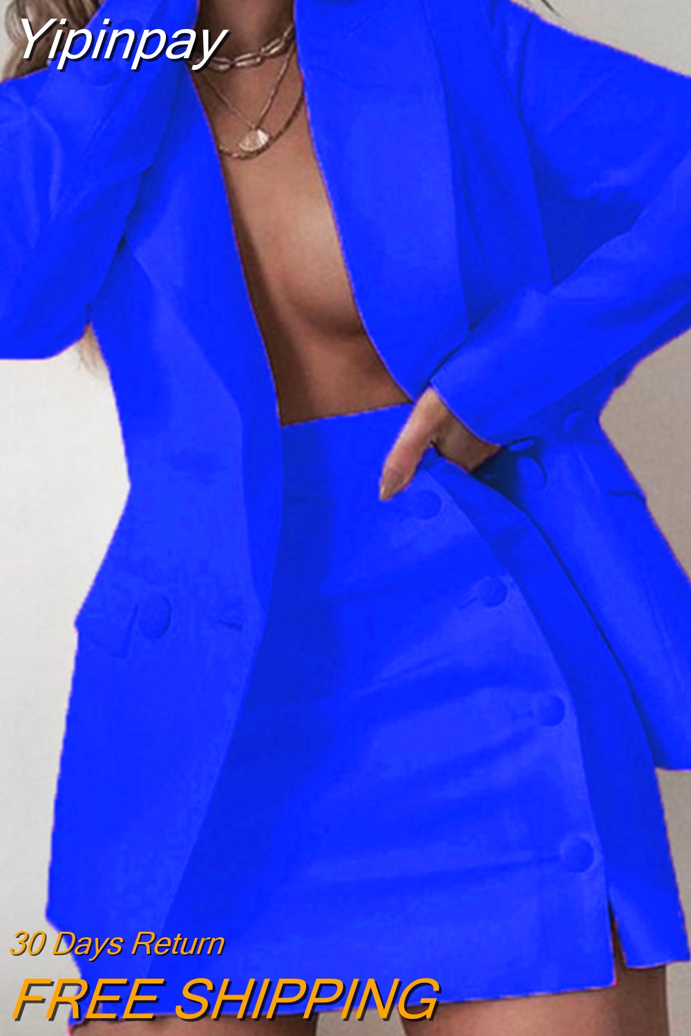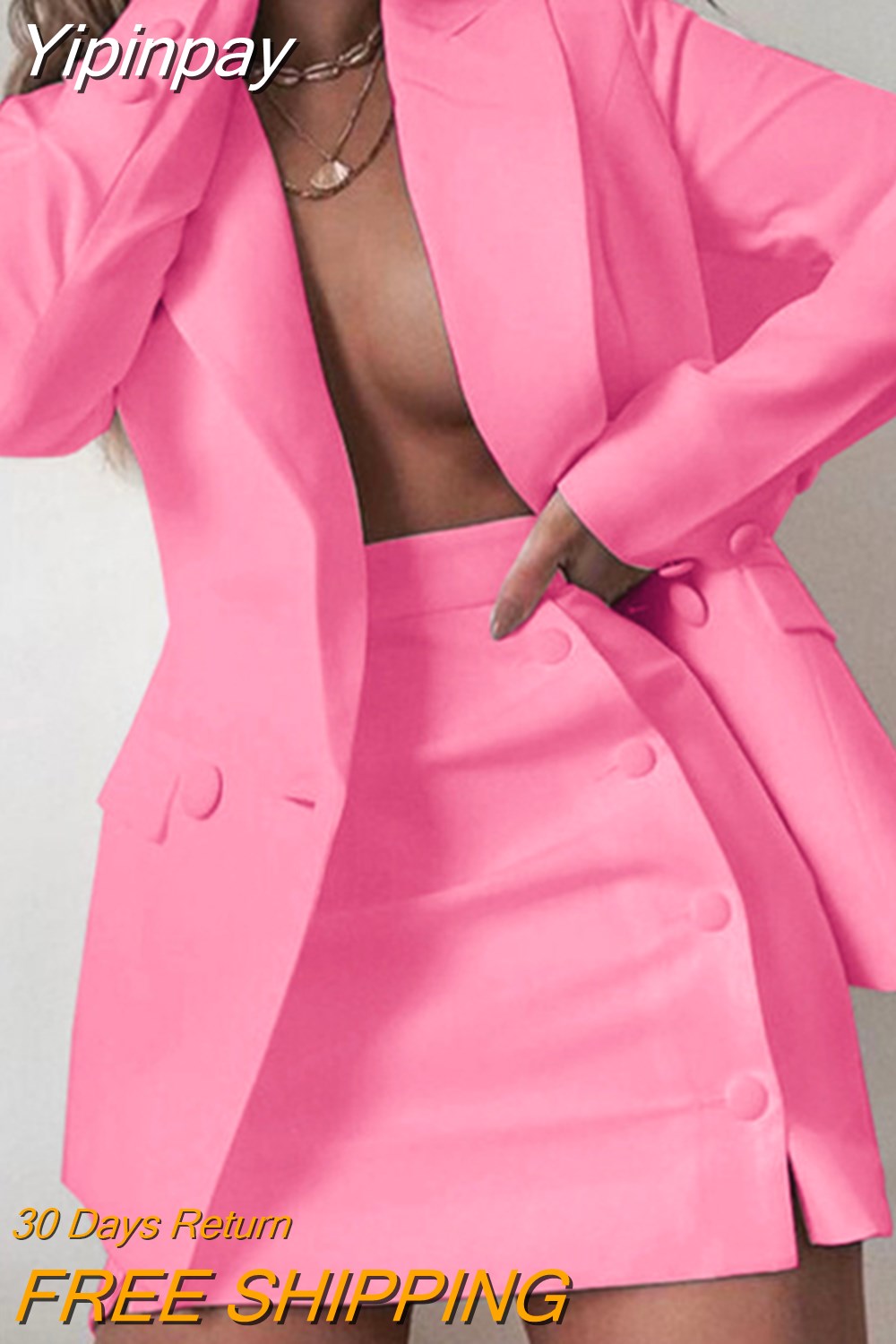 Yipinpay Women 2 Piece Set Fashion Streetwear Long Sleeve Blazer Jacket Sets + Skirt Slim Suit Elegant Office Lady Casual Coat Suits