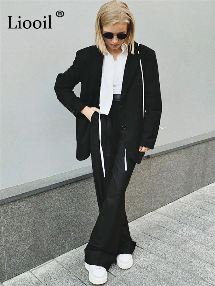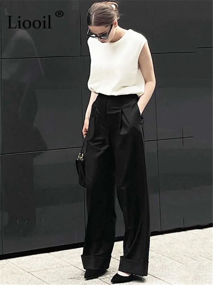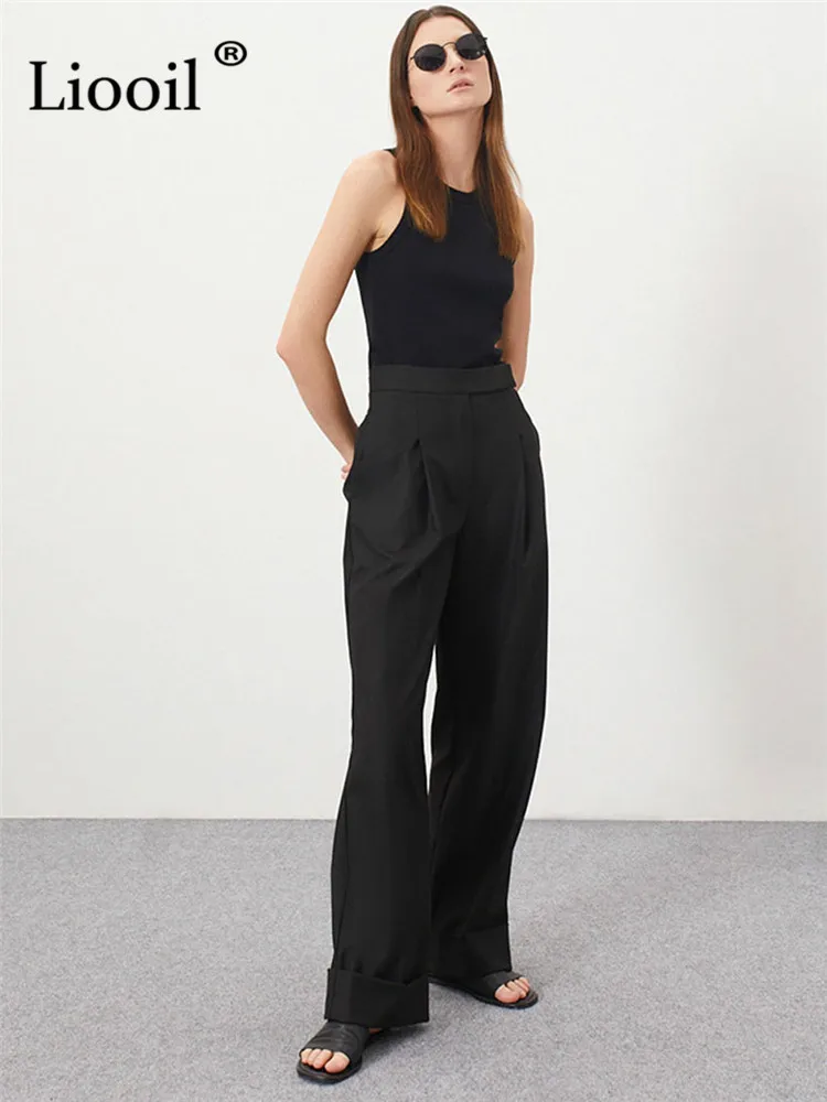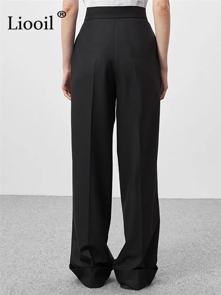 Yipinpay Women Baggy Suit Pants Wide Leg High Waist New Spring 2023 Summer Black Slacks With Pockets Streetwear Casual Trousers