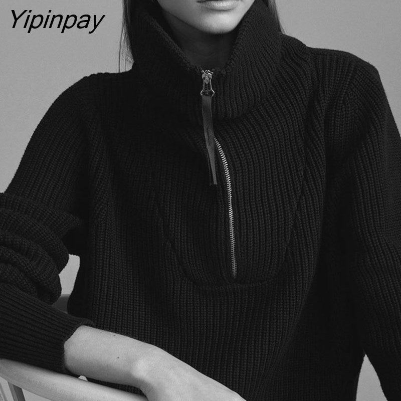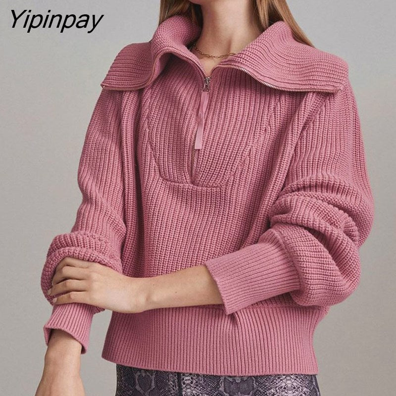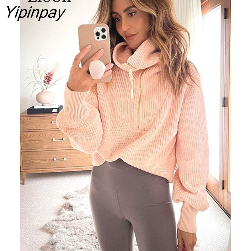 Yipinpay Women Baggy Sweater Zip Up Loose Pullovers Warm Knitted Tops Female Jumpers Autumn Winter Streetwear Khaki Thick Knit Sweaters