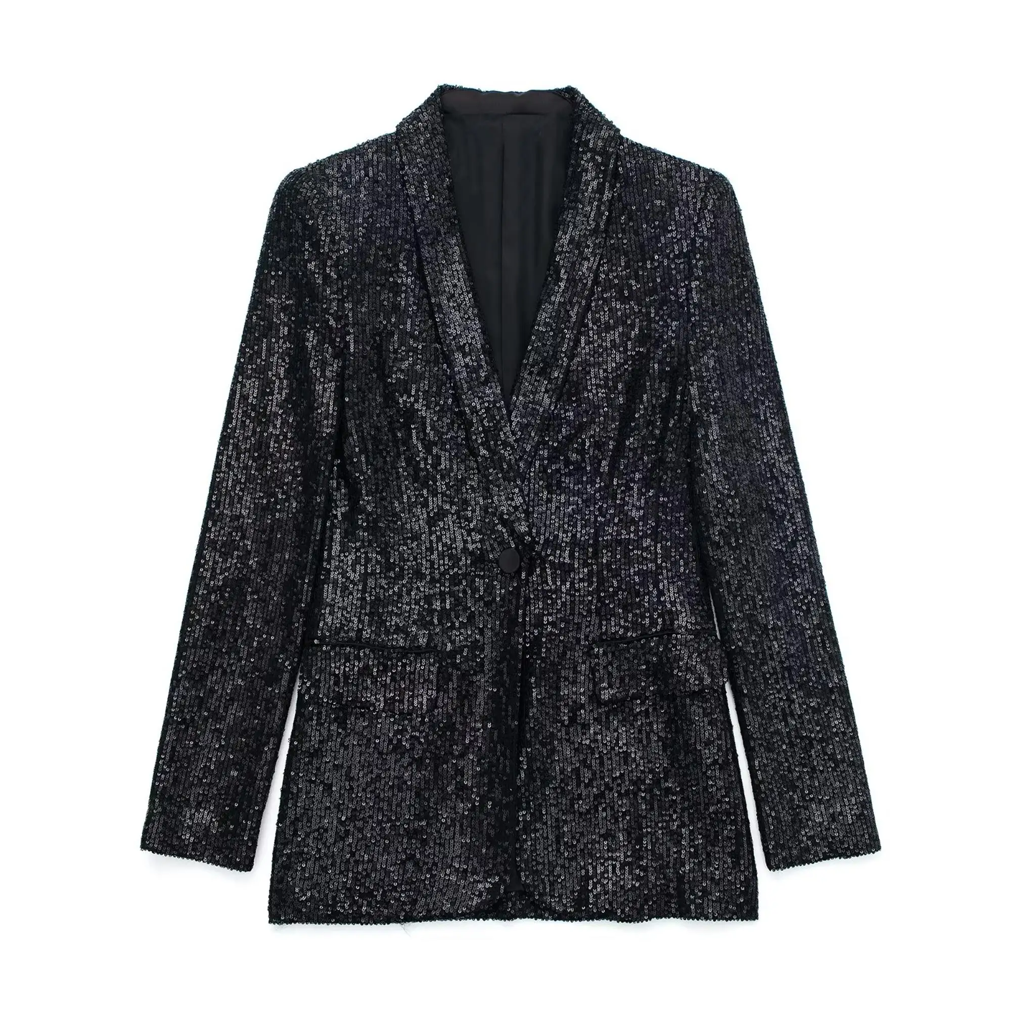 Yipinpay Women Beading Blazer Jackets 2023 Autumn Winter Notched Office Outfits Pockets Coats Single Button Long Sleeve Chic Outwear