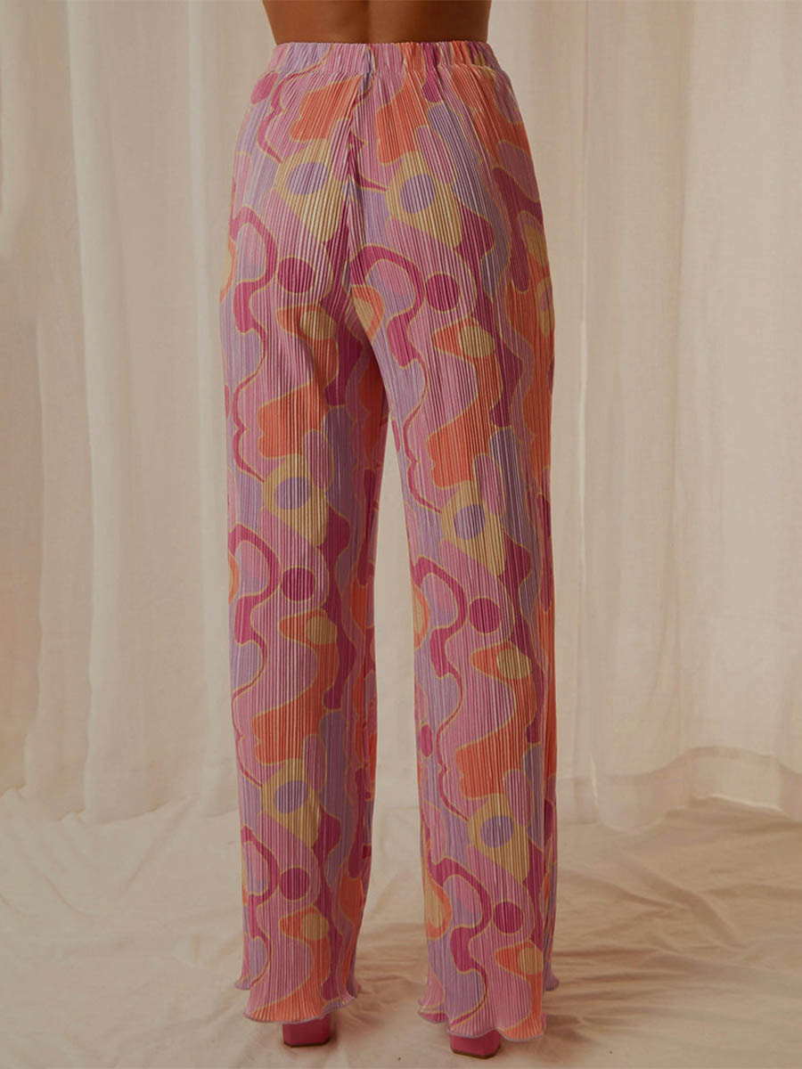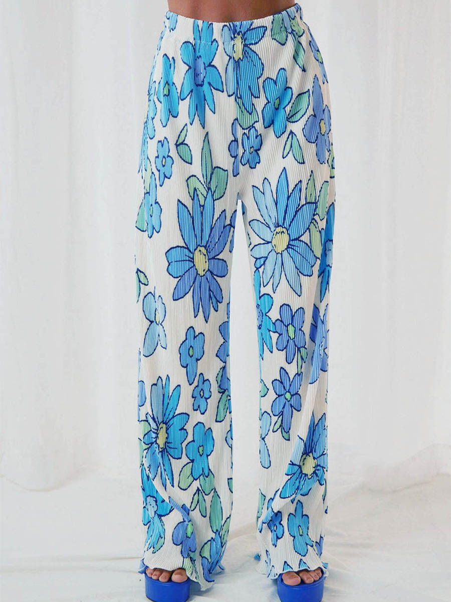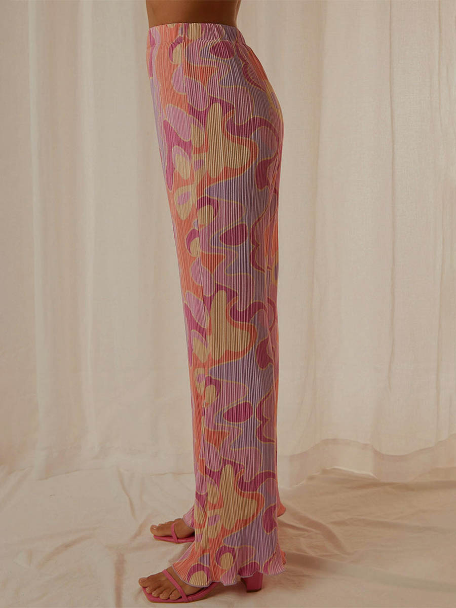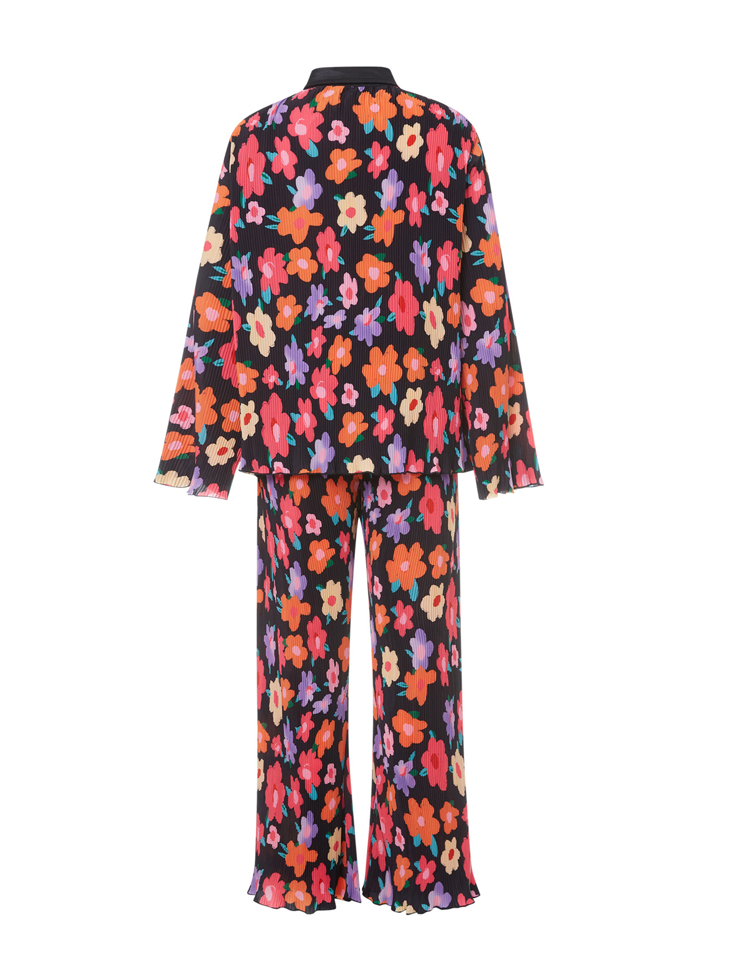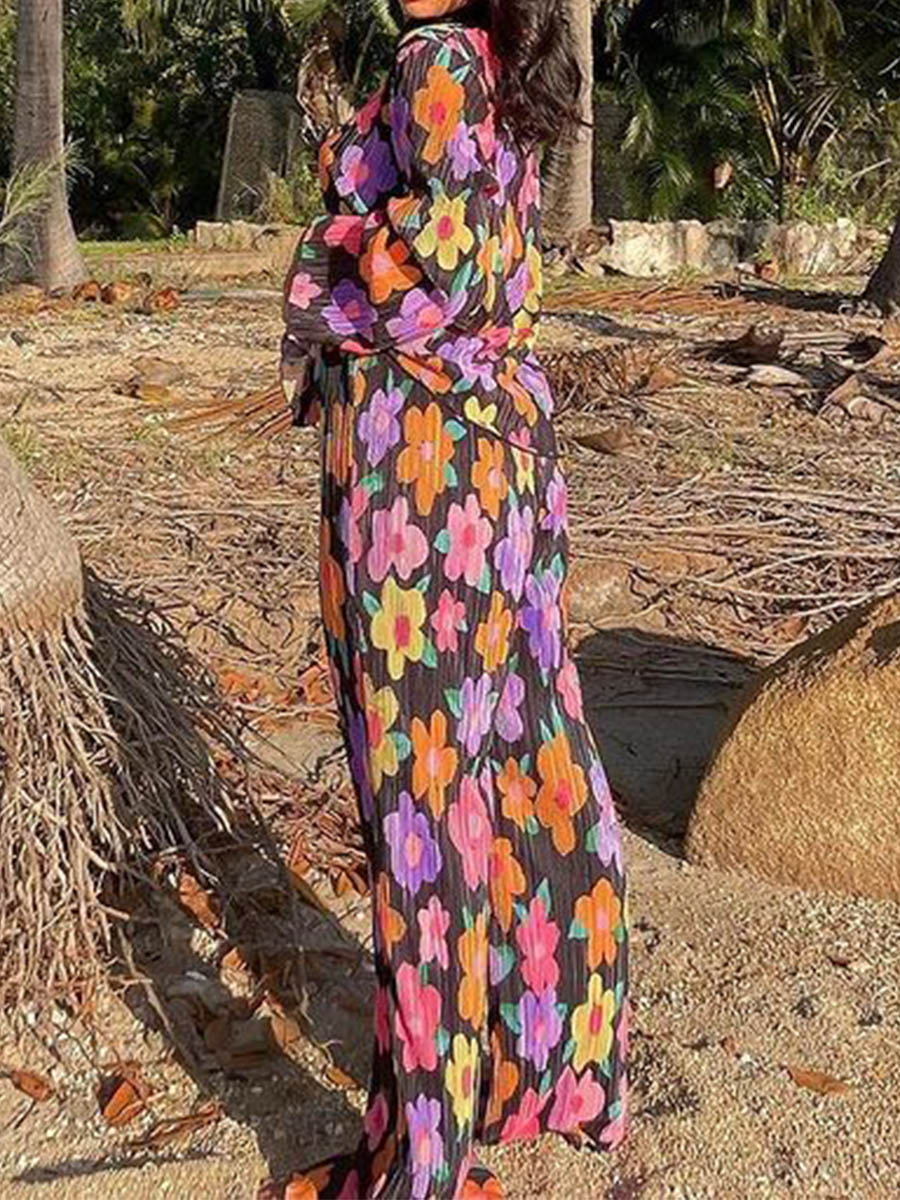 Yipinpay Women Casual 2 Pcs Clothes Set Flower Abstract Pattern Print Lapel Buttons Long Sleeve Shirts Tops With Loose Long Pants New