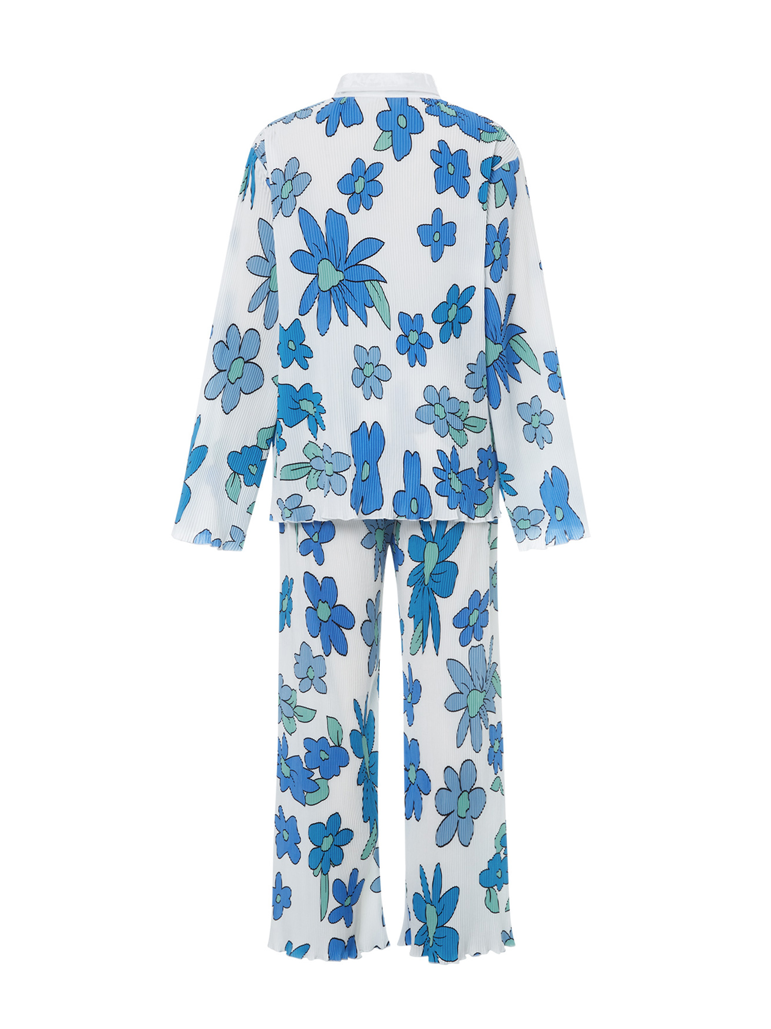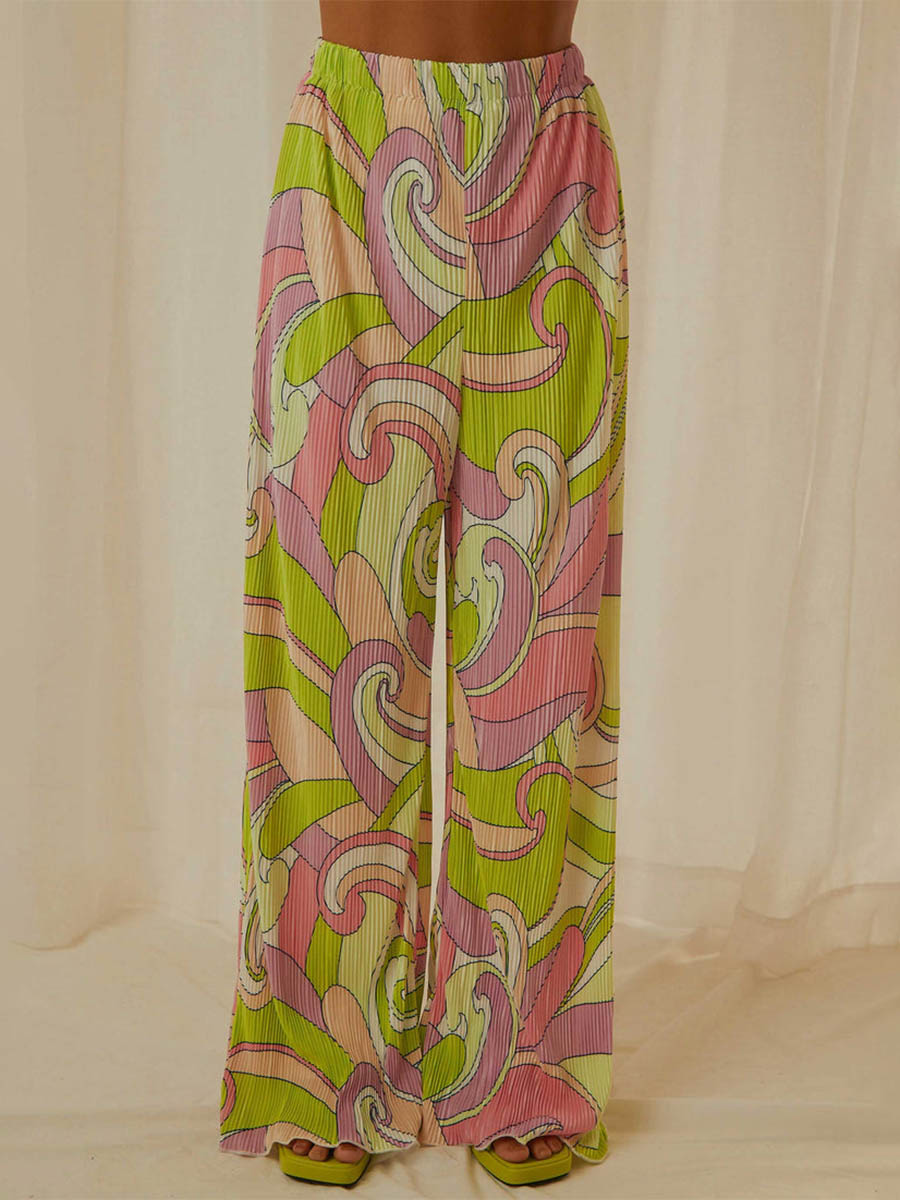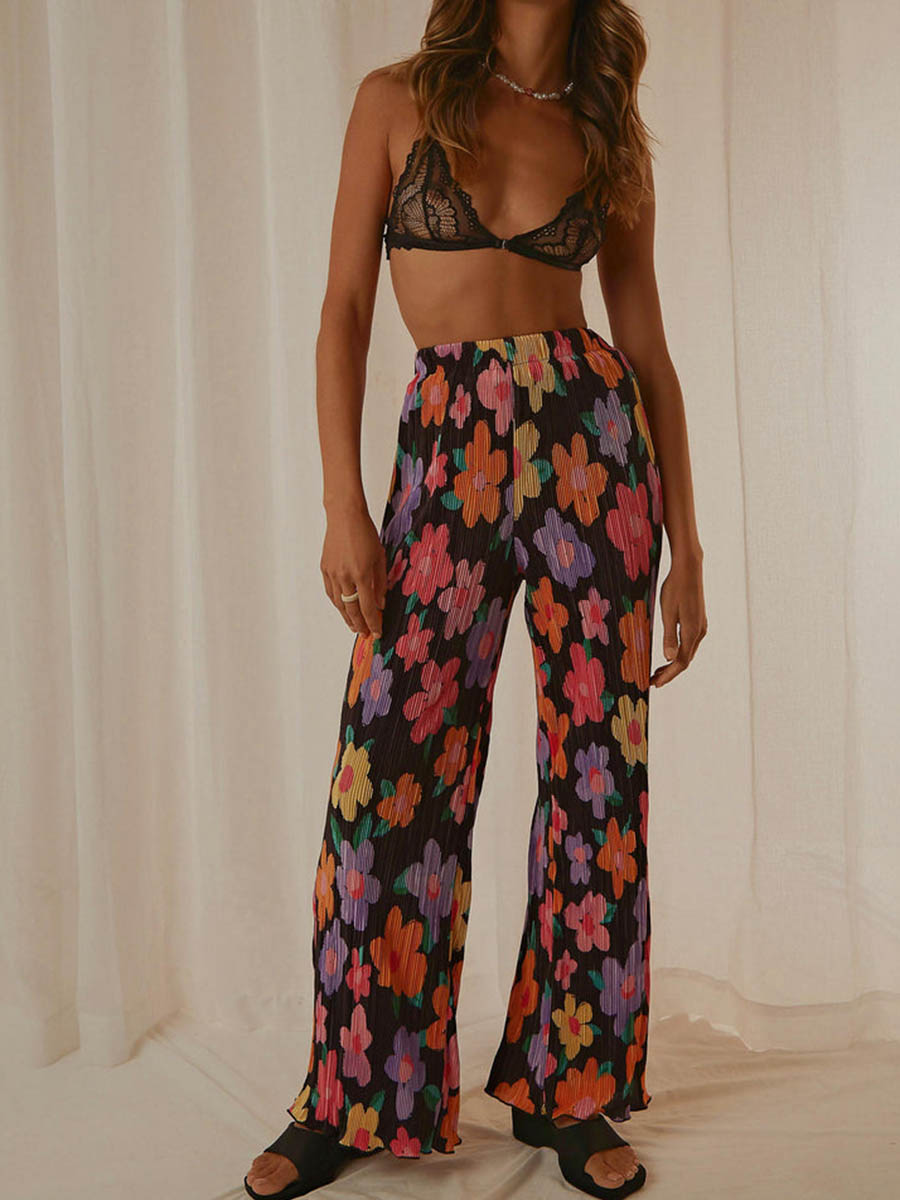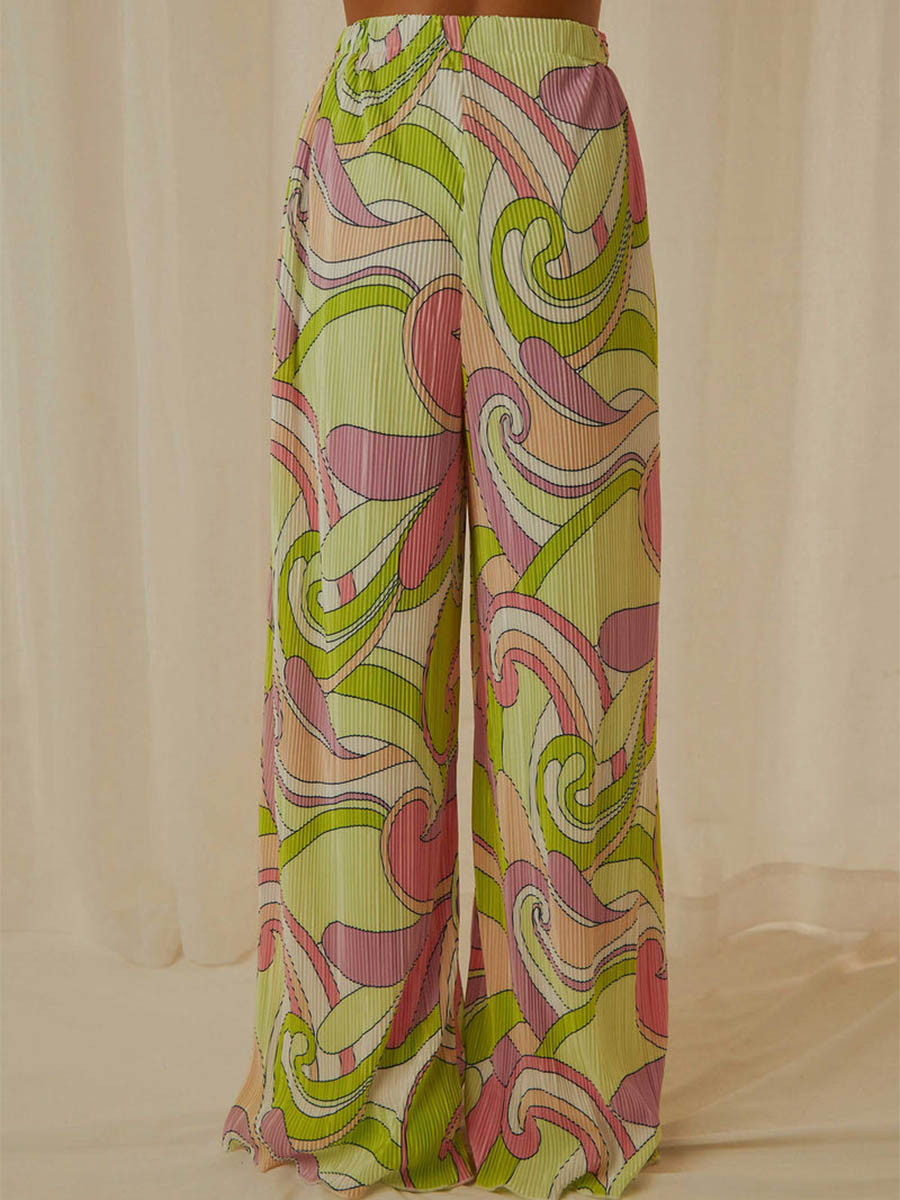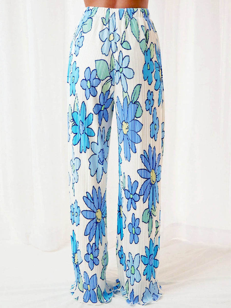 Yipinpay Women Casual 2 Pcs Clothes Set Flower Abstract Pattern Print Lapel Buttons Long Sleeve Shirts Tops With Loose Long Pants New