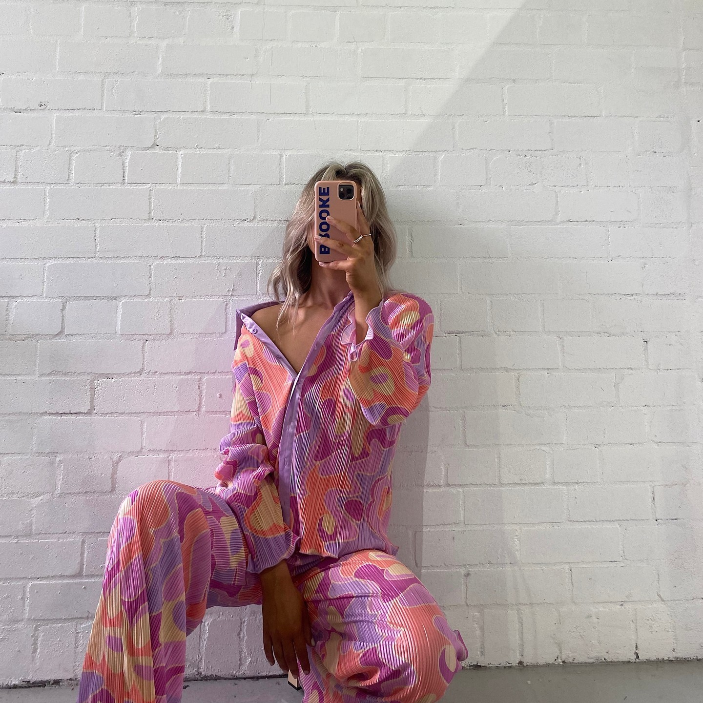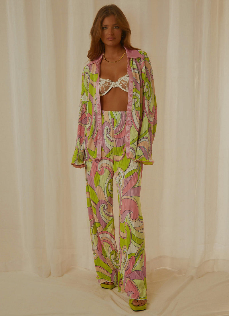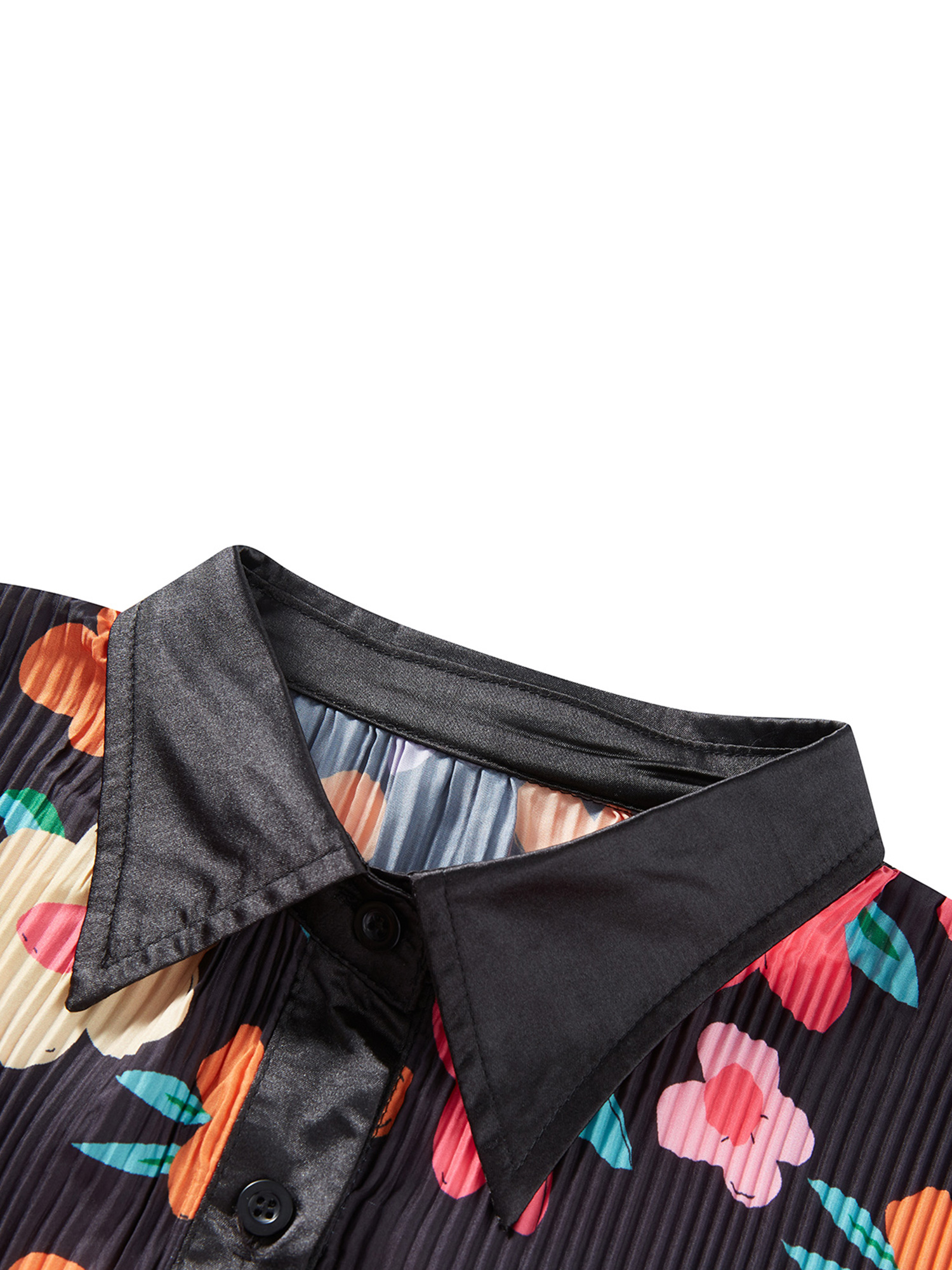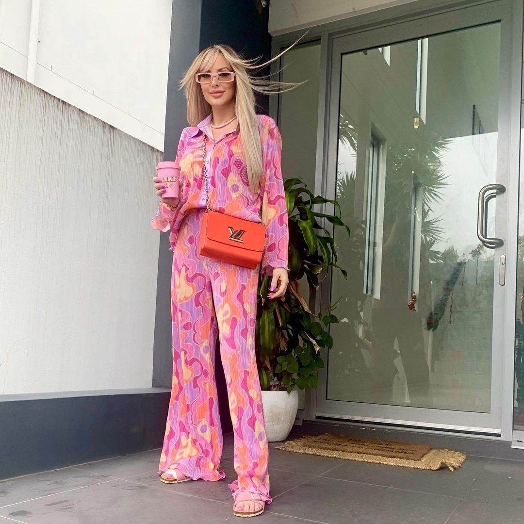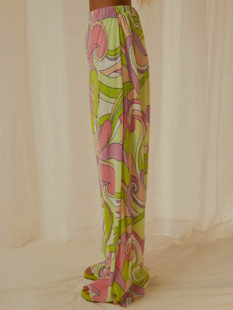 Yipinpay Women Casual 2 Pcs Clothes Set Flower Abstract Pattern Print Lapel Buttons Long Sleeve Shirts Tops With Loose Long Pants New