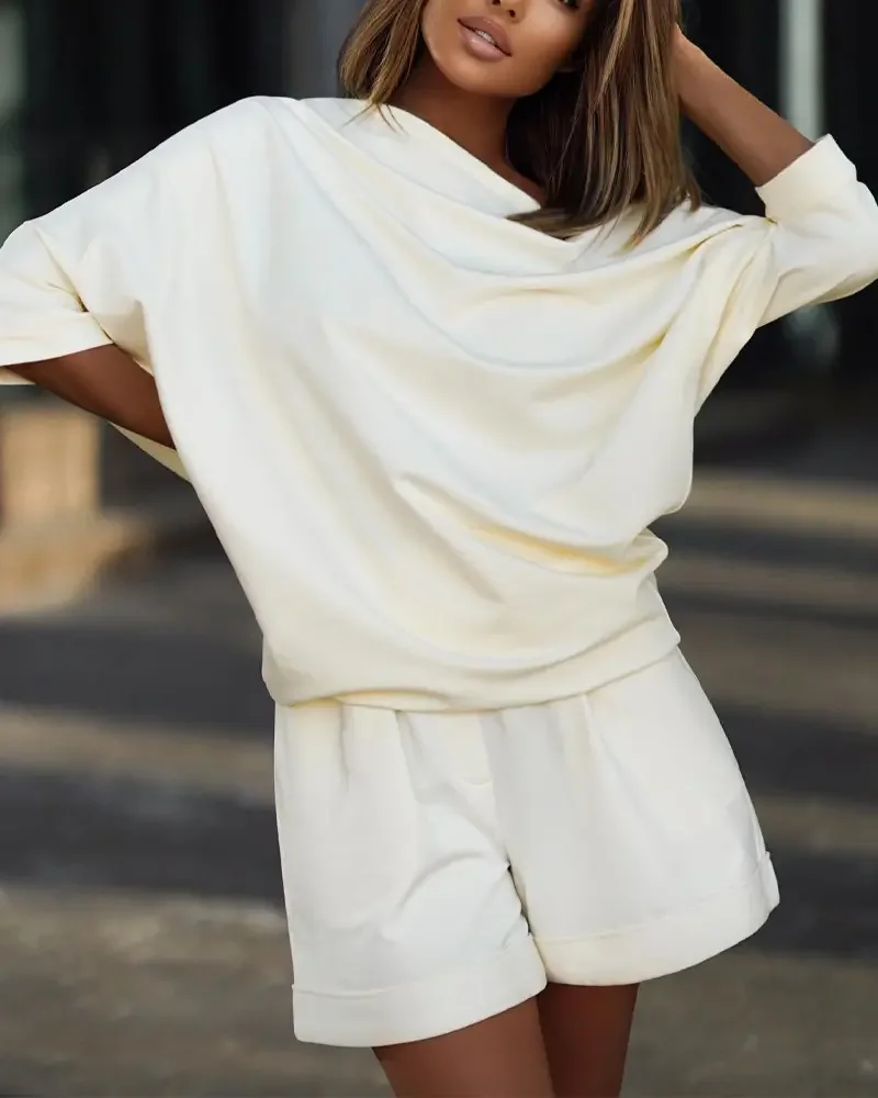 Yipinpay Women Casual Top & Pocket Detail Shorts Set Spring Female & Lady Office Shorts Suits Two Pieces 2023 Fashion