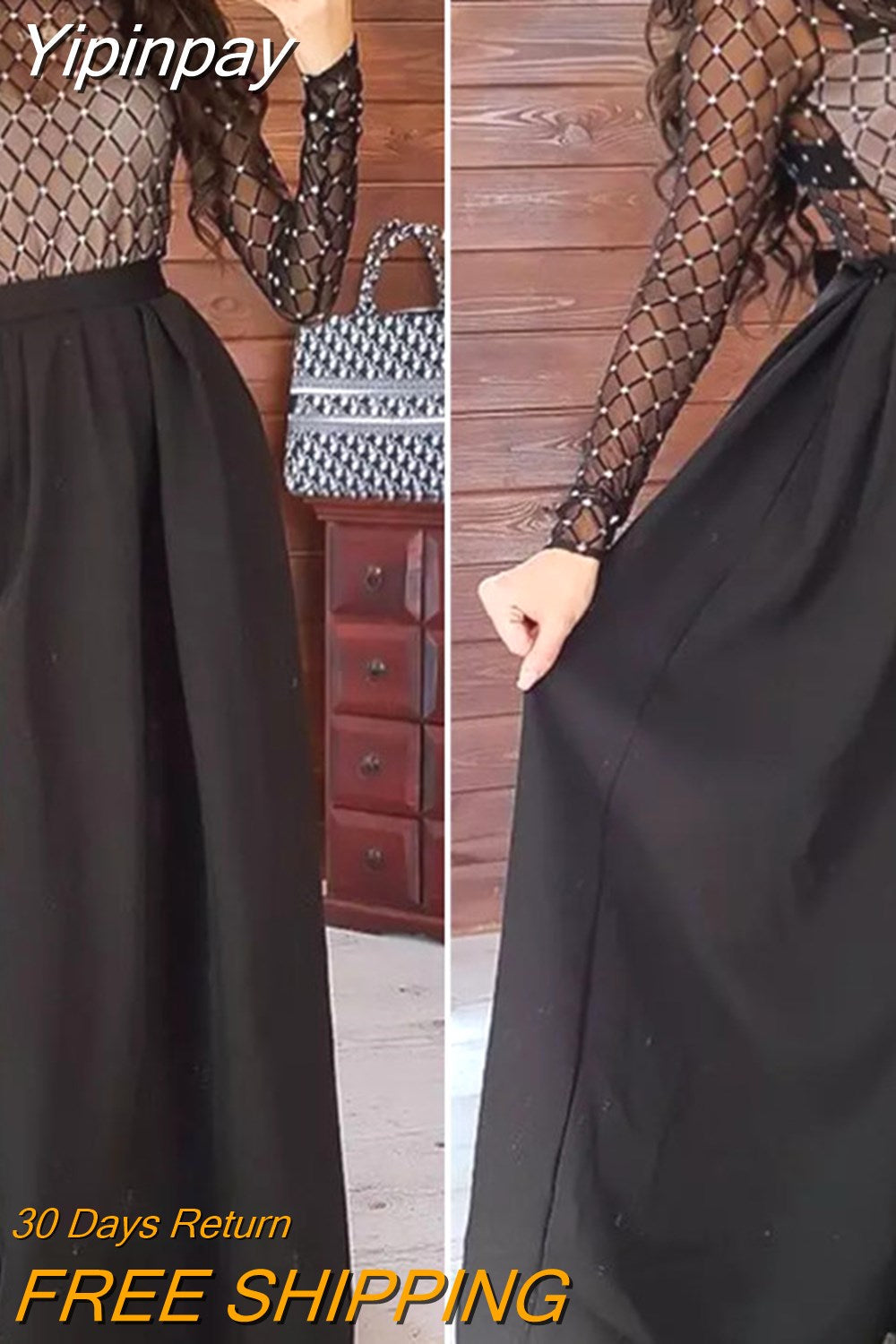 Yipinpay Women Chic Elegant Dresses Evening Party Fall Winter Clothes 2023 Vintage Sexy Bodycon Long Sleeve Dress for Day and Night Party