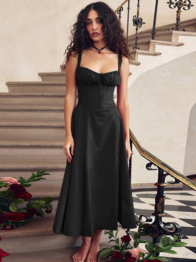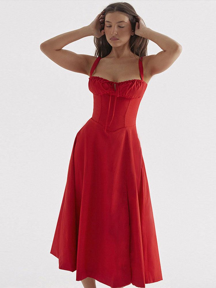 Model Number: Women Chic V-Neck Spaghetti Strap Midi Dress