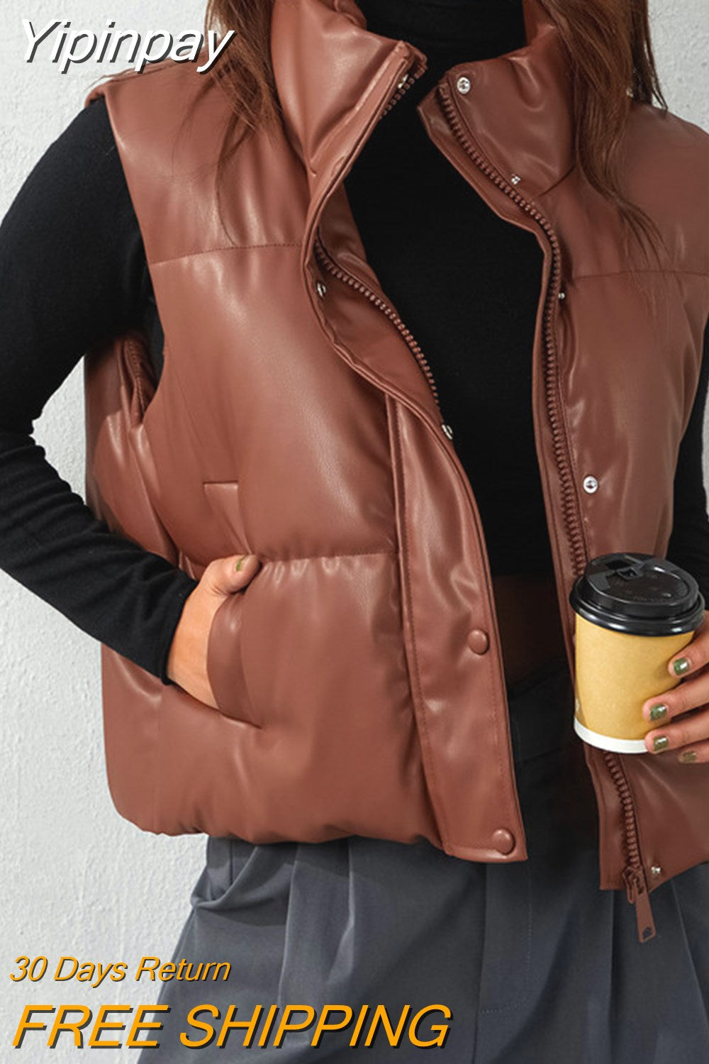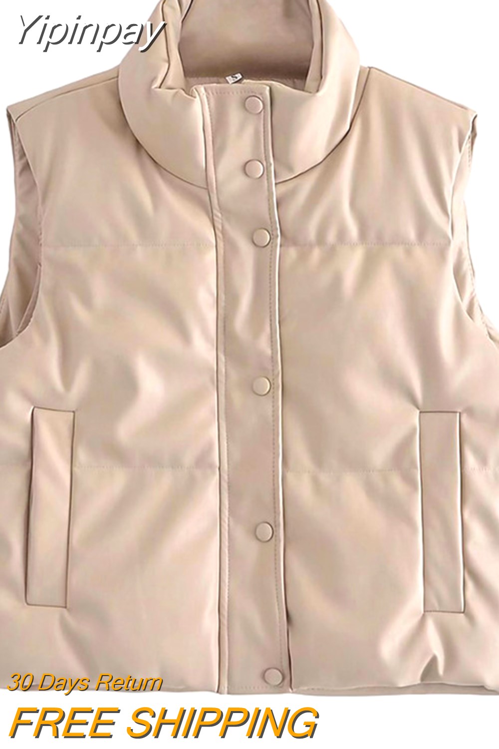 Yipinpay Women Fall Winter Puffer Vests Jackets Warm Sleeveless Coats Harajuku 2023 y2k Clothes Luxury Vintage Crop Waistcoat Streetwear