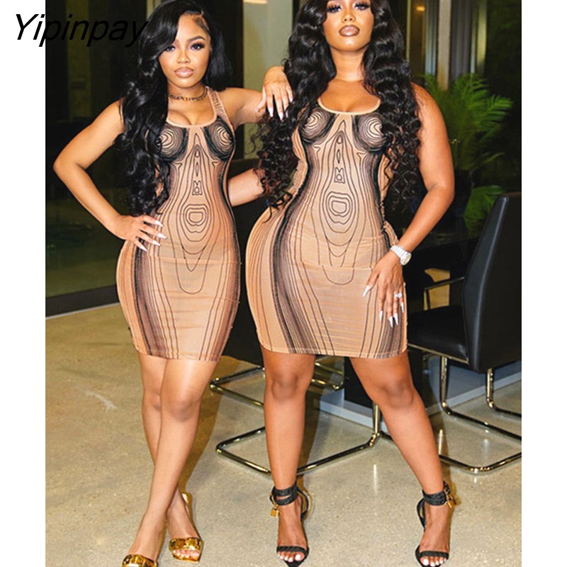 Yipinpay Women Fashion 3D Printing Backless Dress Female Sexy U Neck Sleeveless Pencil Dresses 2023 Elegant Chic Party Club Silm Gown