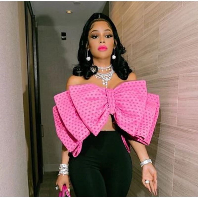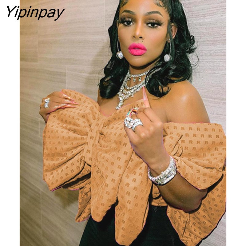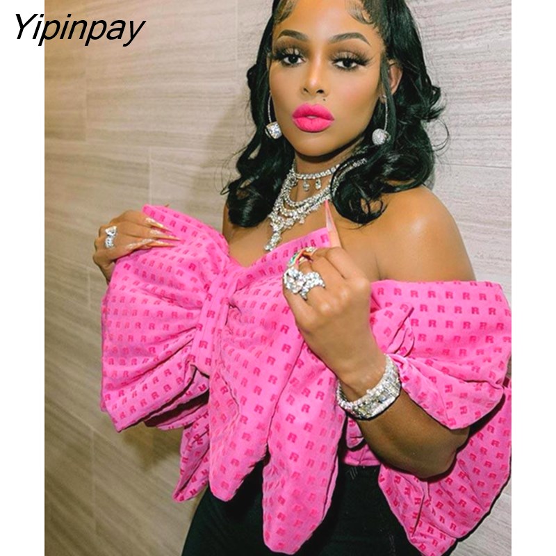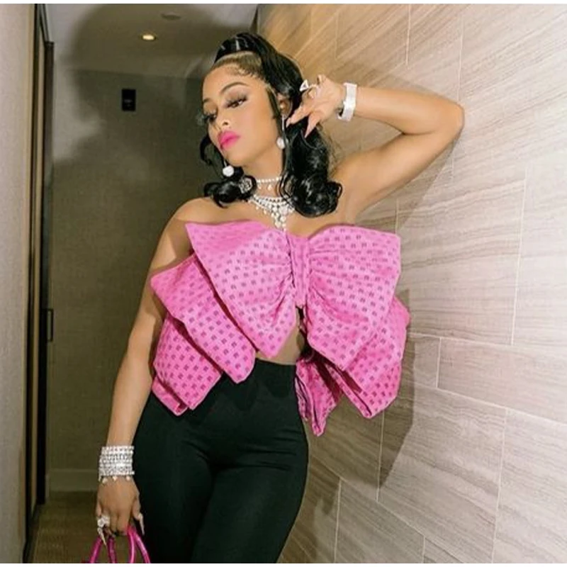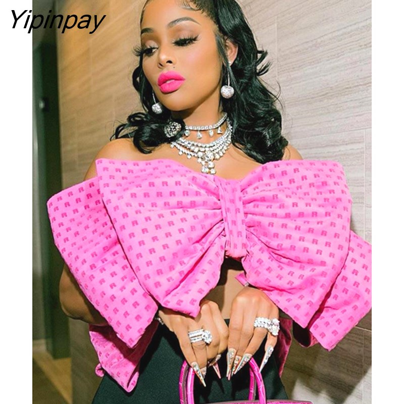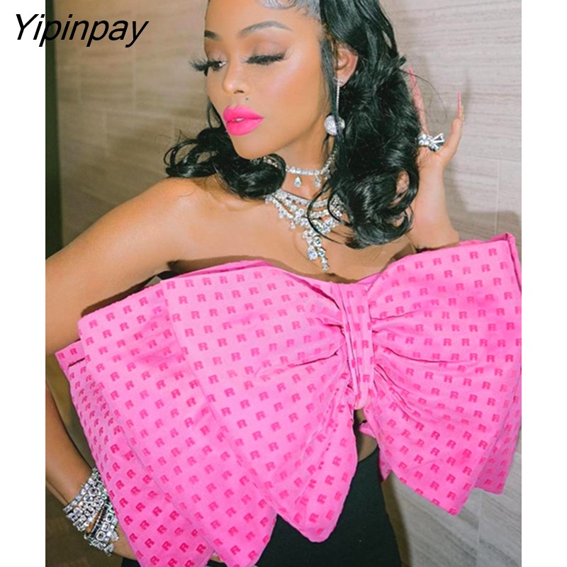 Yipinpay Women Fashion Elegant Bow Sleeveless Tank Top Vintgae Letter Print Pleated Vest Summer Female Sexy Backless Wrapped Chest Tops