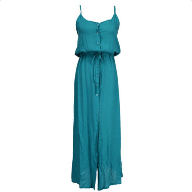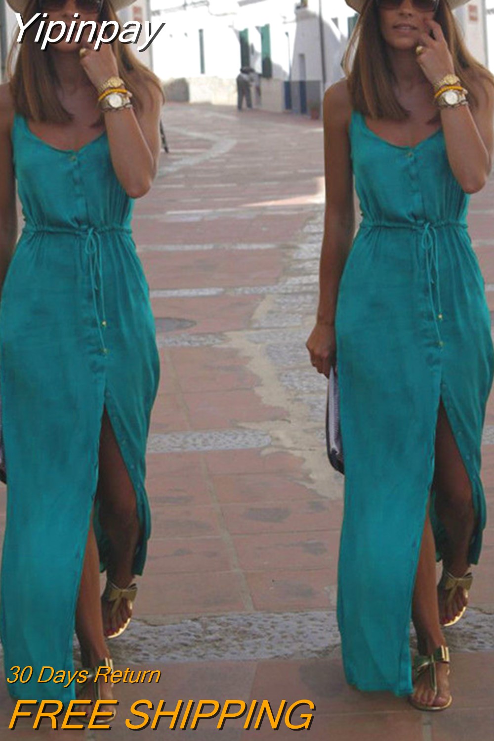 Yipinpay Women Fashion Sexy Dress Summer Womens Ladies Buttons Beach Party Midi V-Neck Dress Holiday Floral Sundress