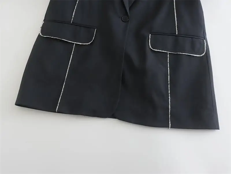 Yipinpay Women Fashion Single Button Blazer Coat 2023 Vintage Long Sleeve Flap Pockets Female Outerwear Chic Vestes Femme