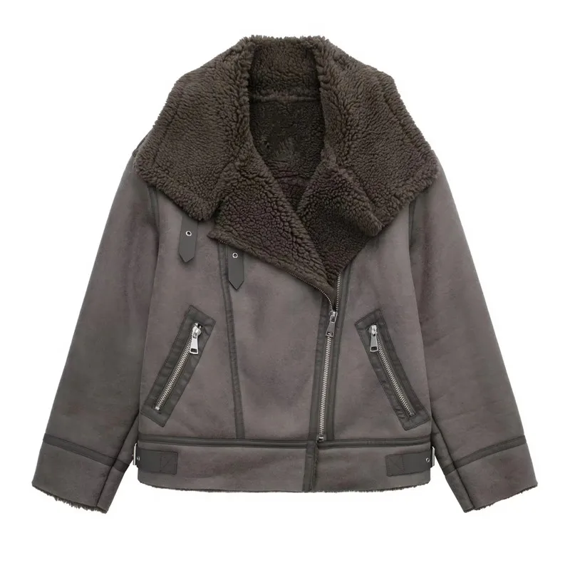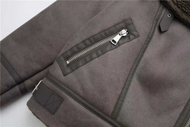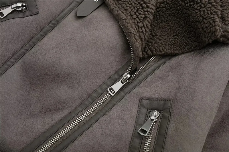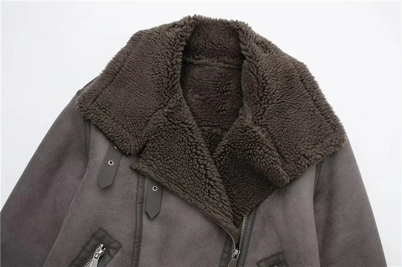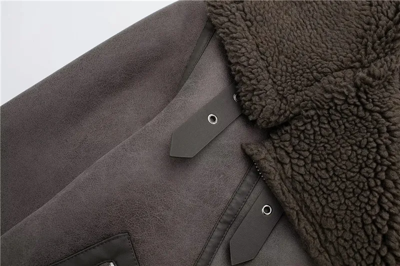 Yipinpay Women Fleece Jacket Brown Faux Leather Jacket Women Double Faced Zip Up Winter Woman Coat 2023 Very Warm Heavy Jackets