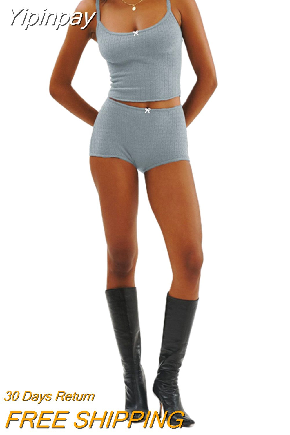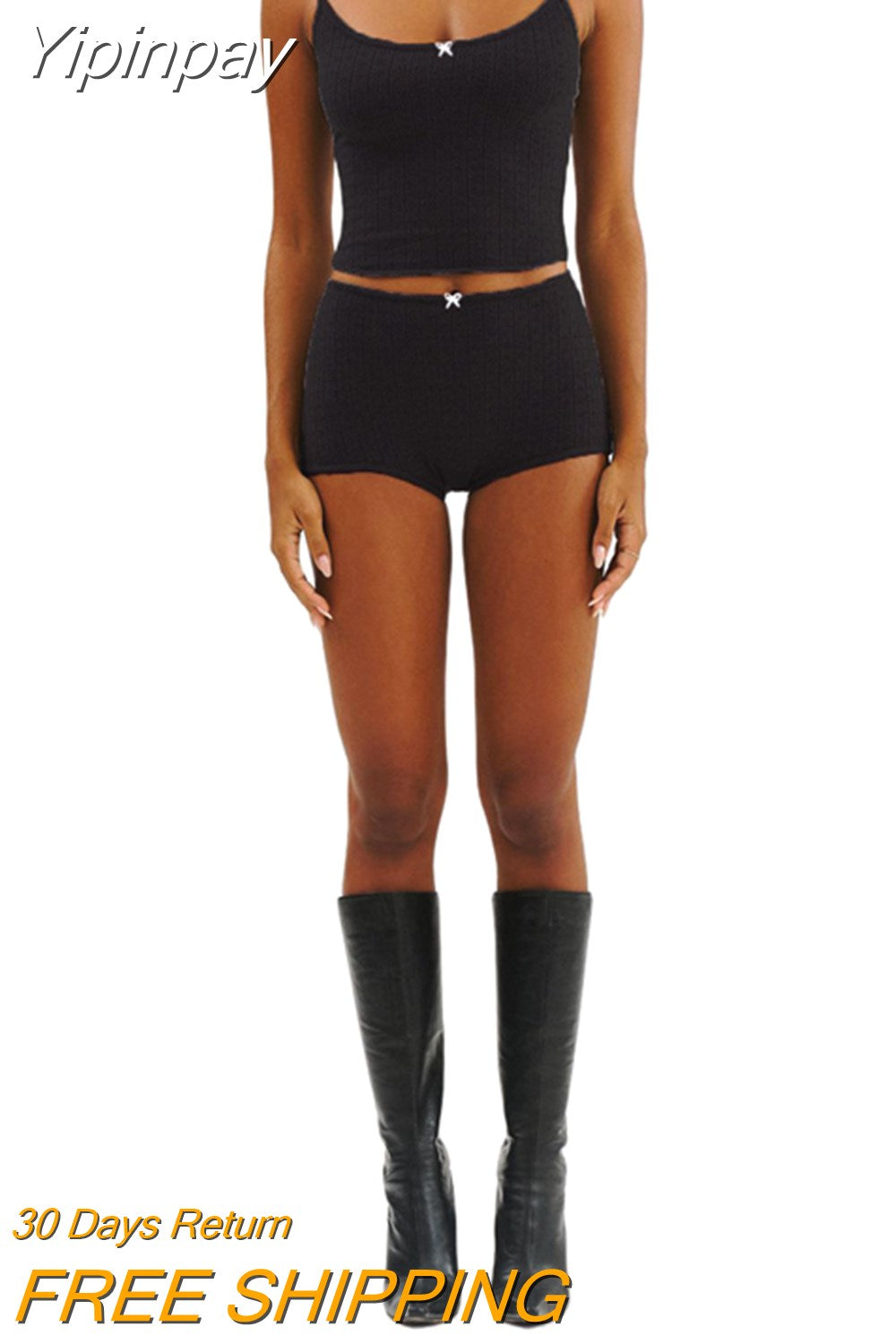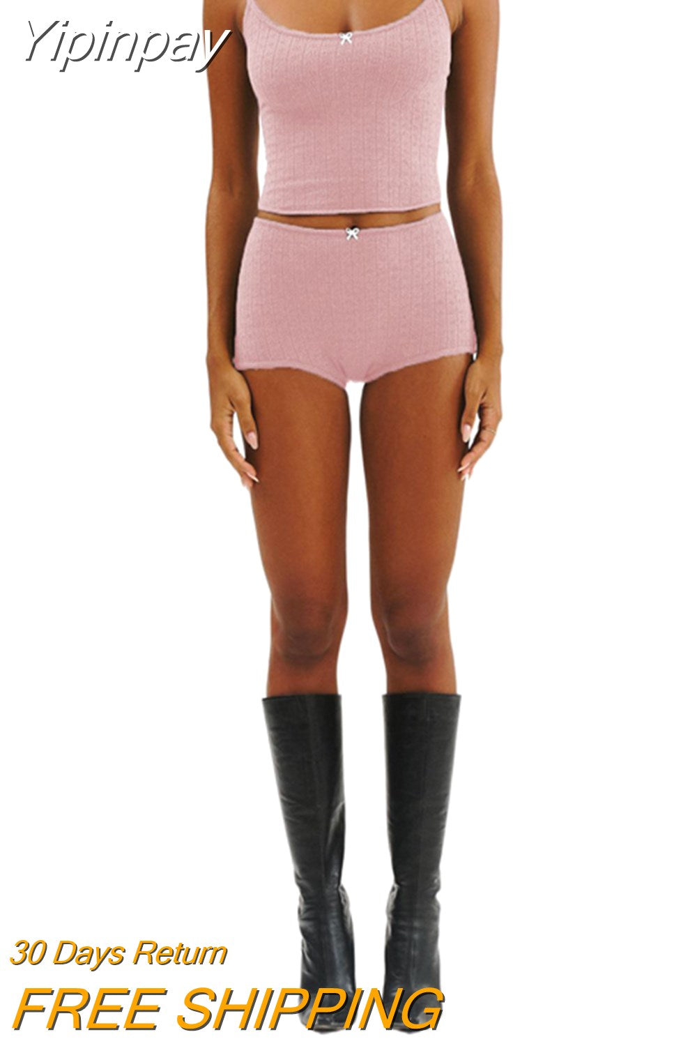 Yipinpay Women Floral Hollowed Print Two Pieces Outfit Y2K Sleeveless Cami Cropped Tank Tops High Waist Shorts Pajamas Set