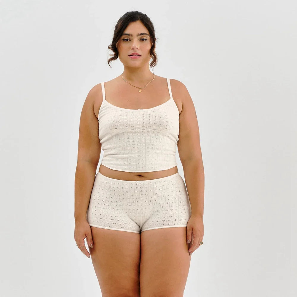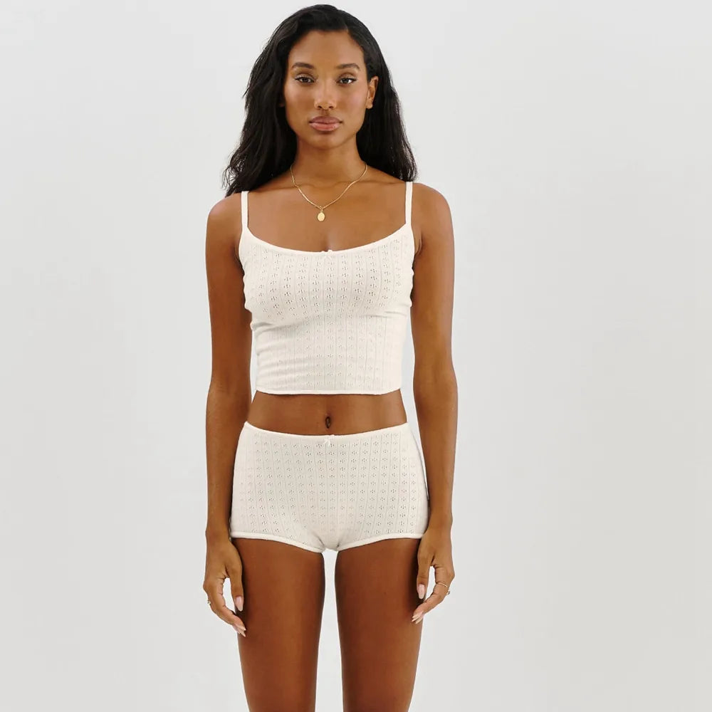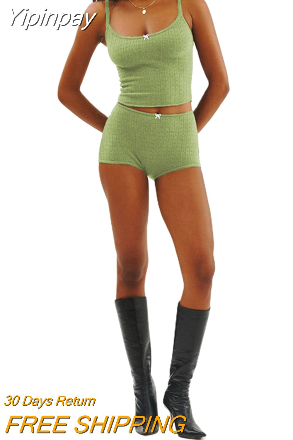 Yipinpay Women Floral Hollowed Print Two Pieces Outfit Y2K Sleeveless Cami Cropped Tank Tops High Waist Shorts Pajamas Set