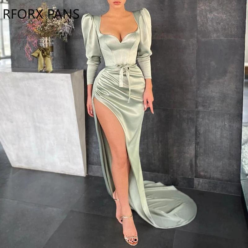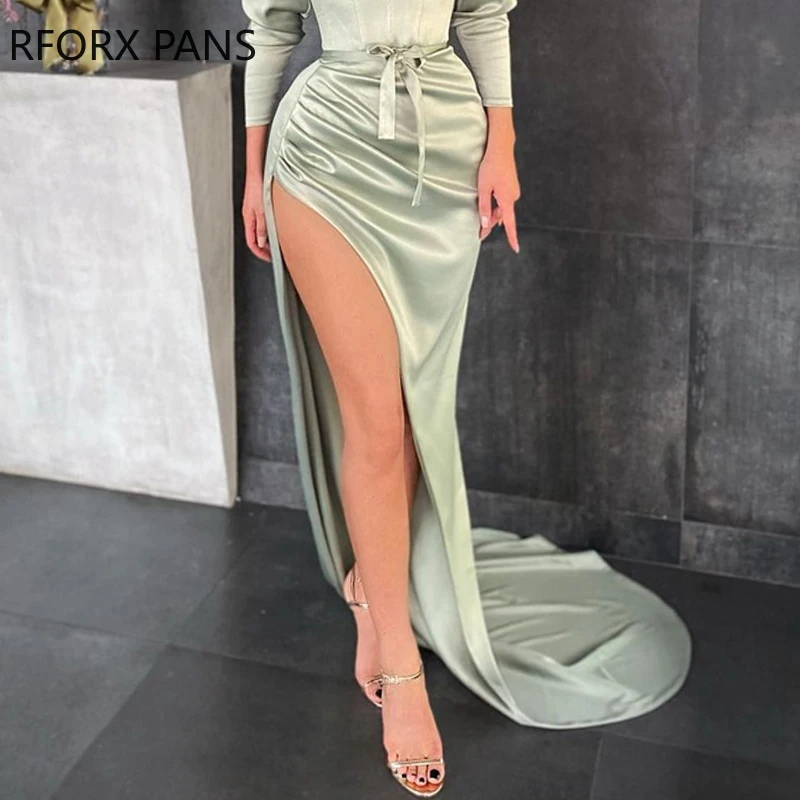 Yipinpay Women High Slit Ruched Plain Evening Dress Maxi Bodycon Dress Elegant Party Dress