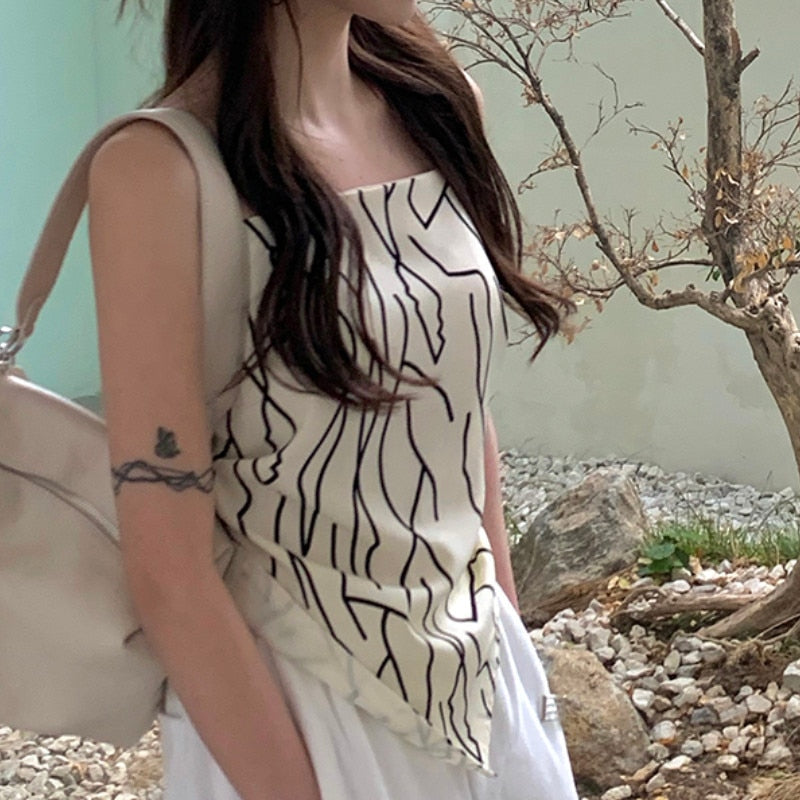 Yipinpay Women Irregular Hem Backless Camisole, Boat Neck Sleeveless Off-the-shoulder Tops, Black/ Beige