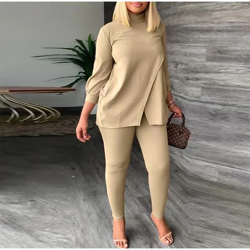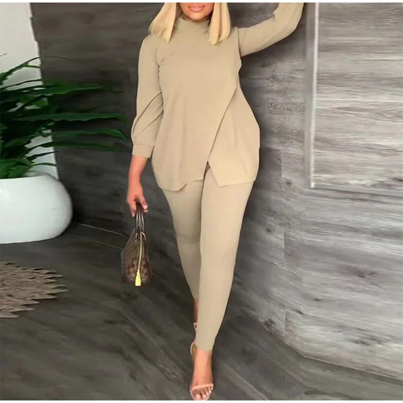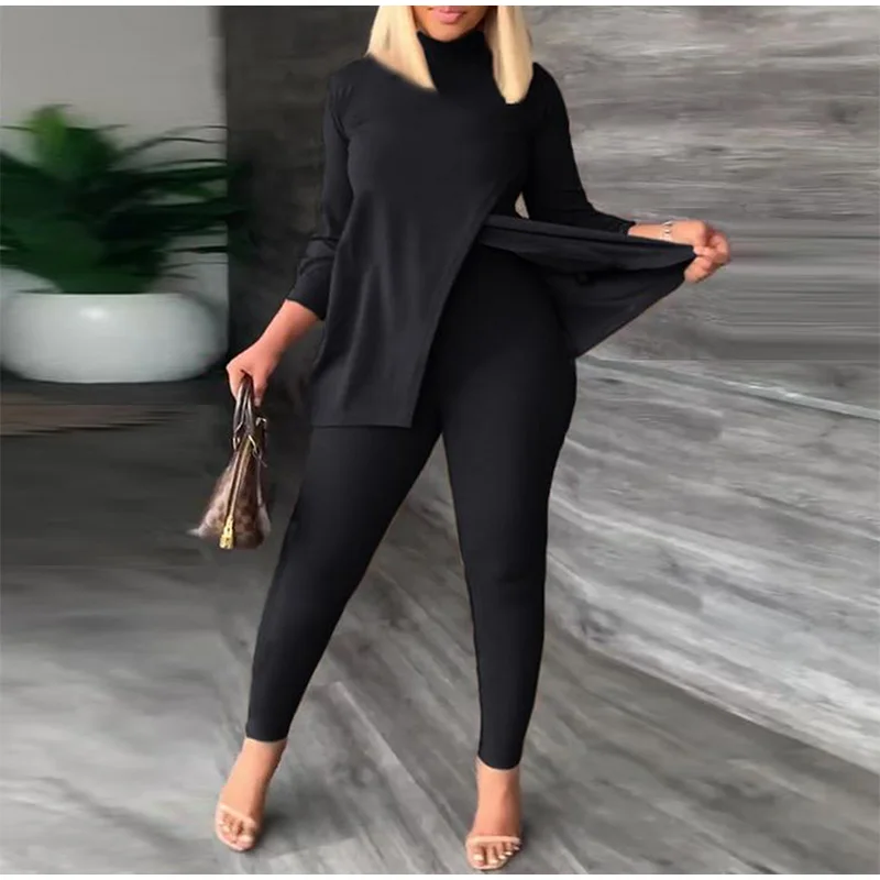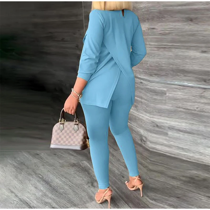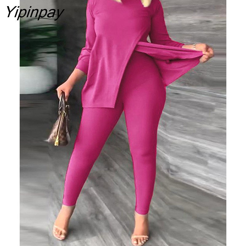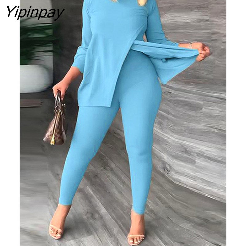 Yipinpay Women Irregular Pullover Two Piece Set Solid Long Sleeve Casual Split Tshirt Leggings Slim Sets 2023 Fashion Office Lady Outfits