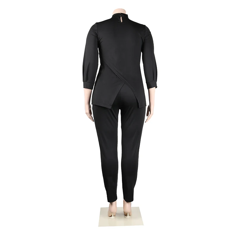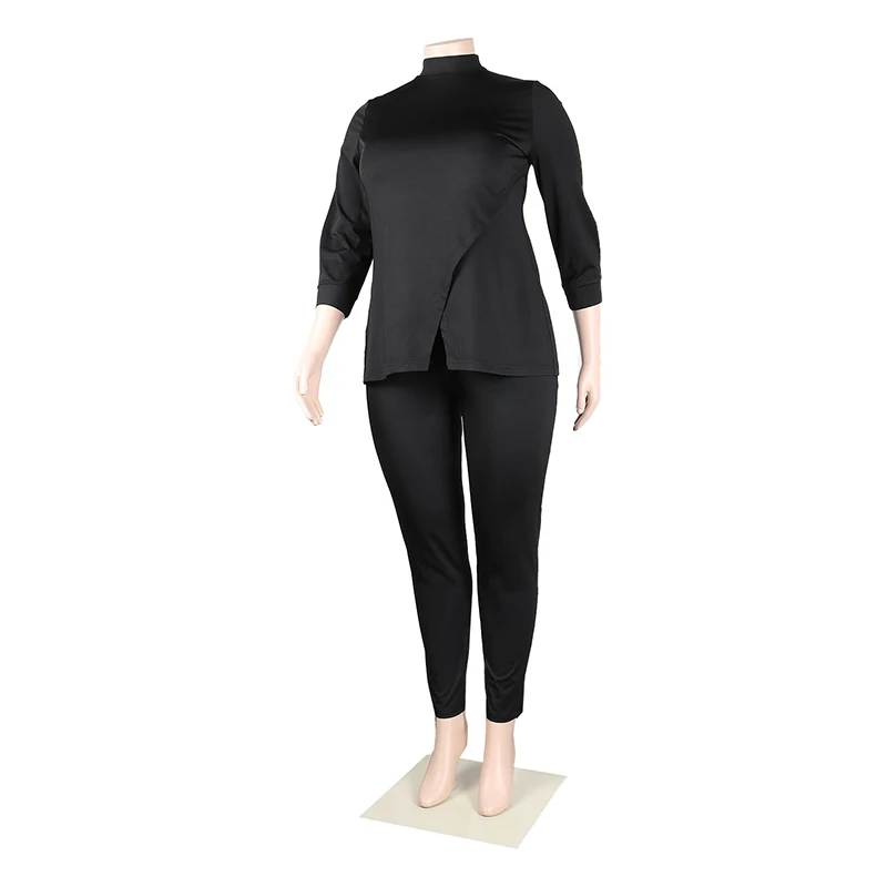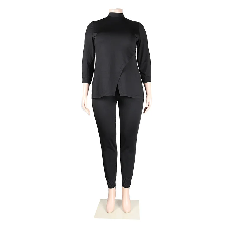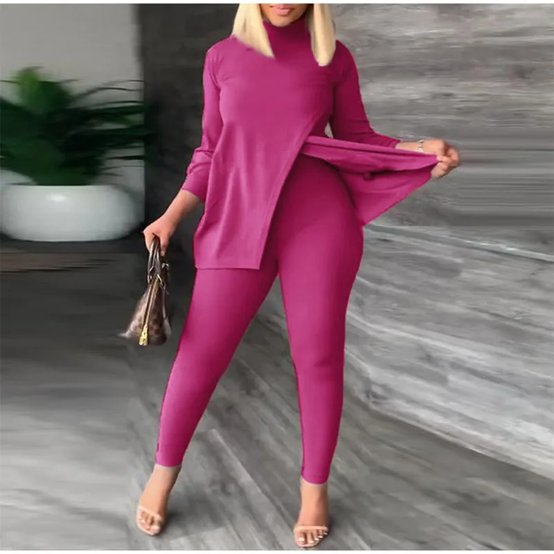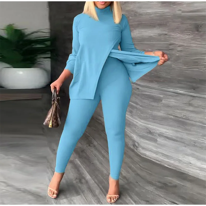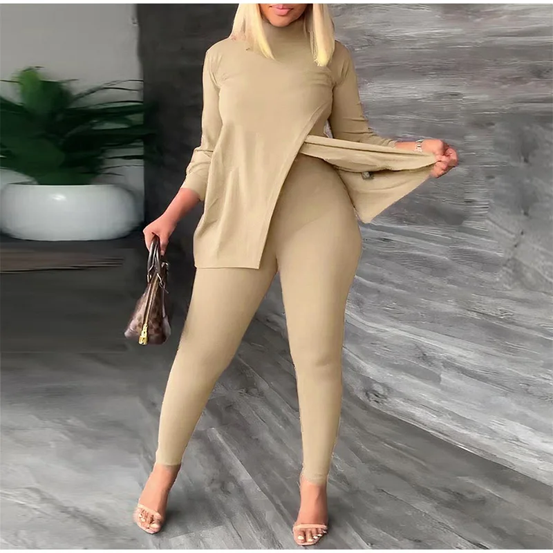 Yipinpay Women Irregular Pullover Two Piece Set Solid Long Sleeve Casual Split Tshirt Leggings Slim Sets 2023 Fashion Office Lady Outfits