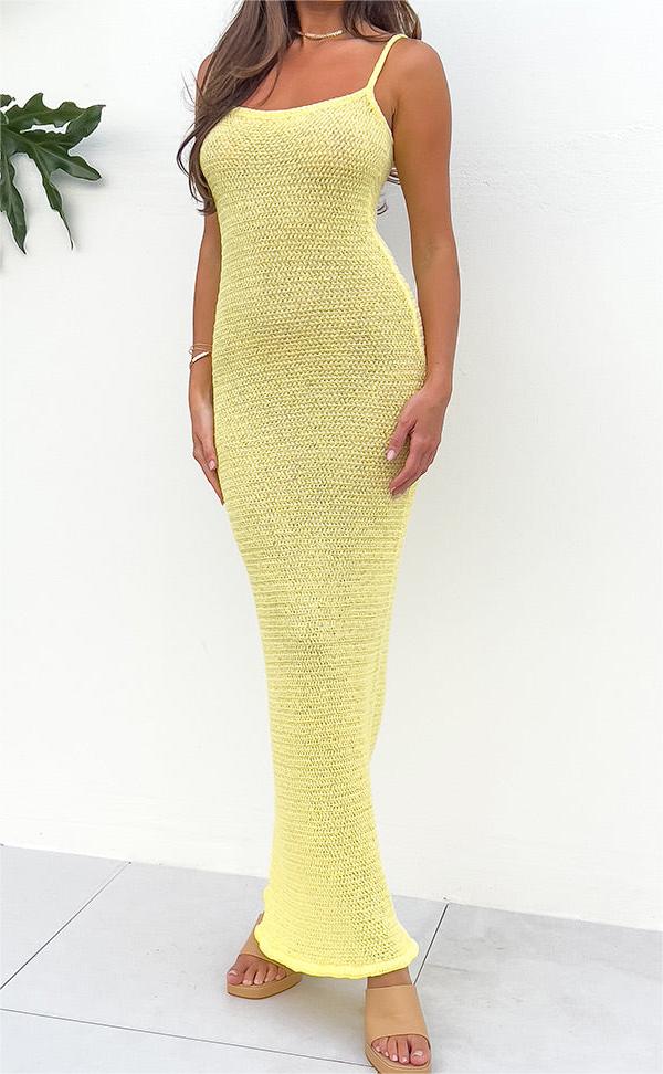 Yipinpay Women Long Bodycon Dress Solid Color Knitted Sleeveless Sling Spaghetti Strap Cocktail Dress Summer Party Club Dress S M L