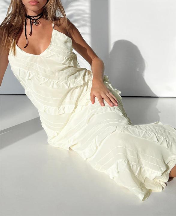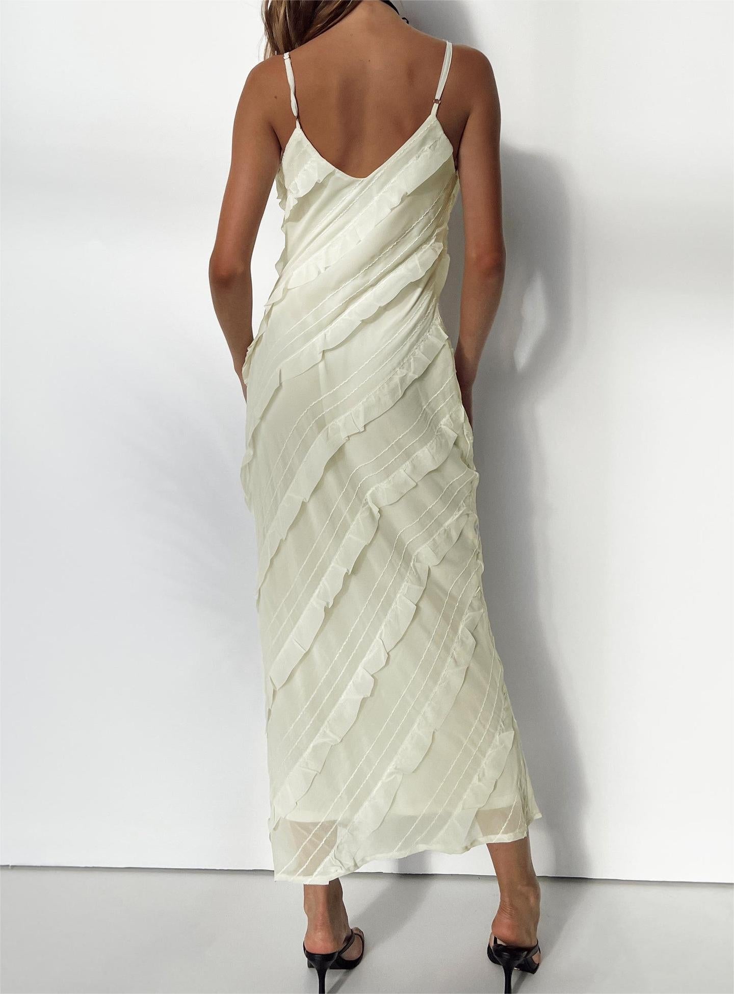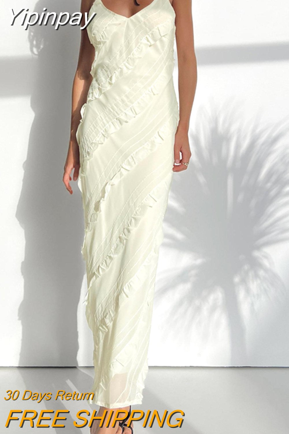 Yipinpay Women Long Bodycon Dress Solid Color Ruffles V-Neck Sleeveless Cami Dress Summer Backless Party Dress Hot Sale S-XL