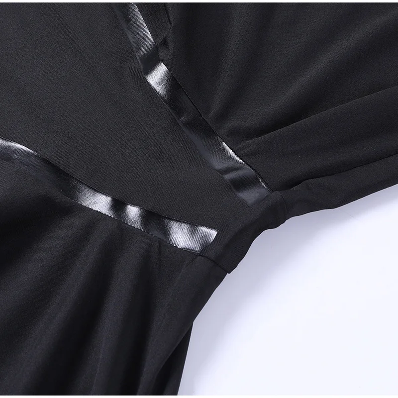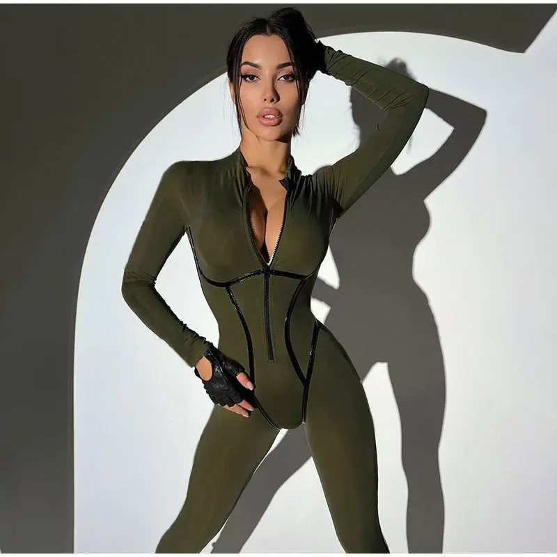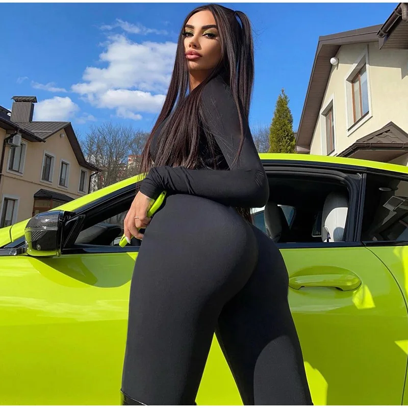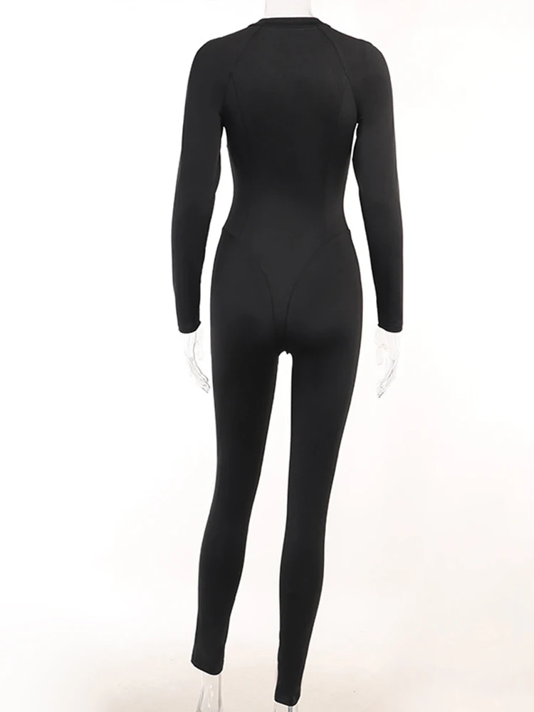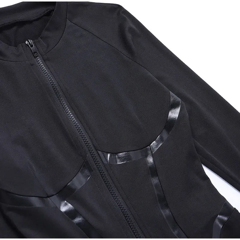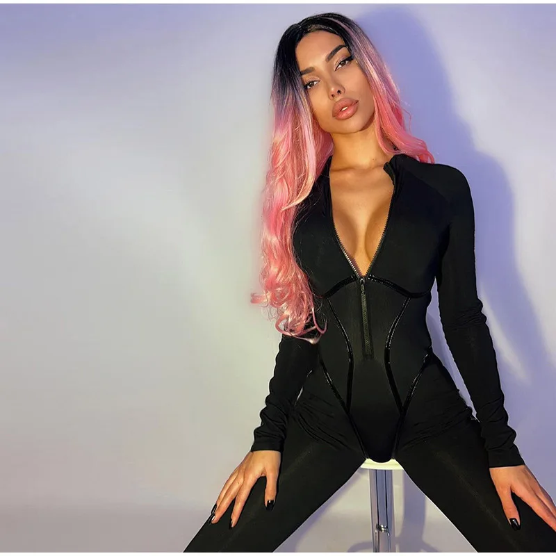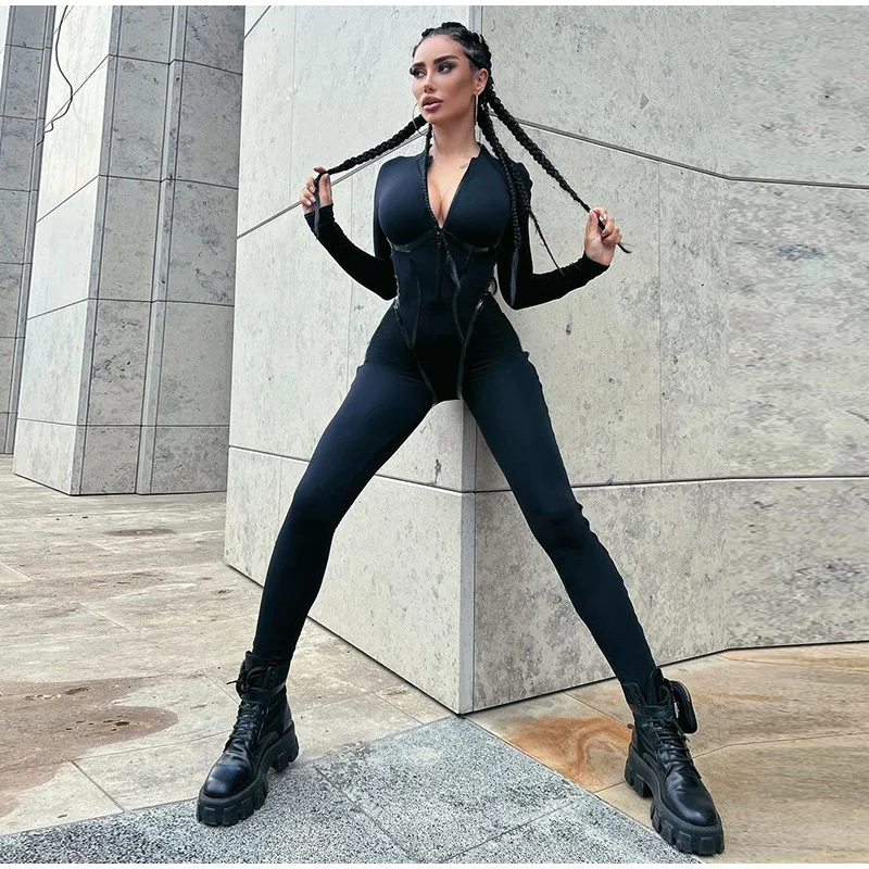 Yipinpay Women Long Sleeve Bodycon Black Jumpsuit Sexy Patchwork Pu One Piece Legging 2023 Female Zipper Rompers Outfit Y2K Streetwear