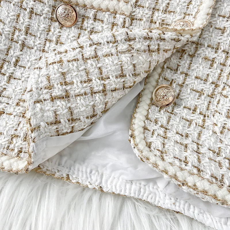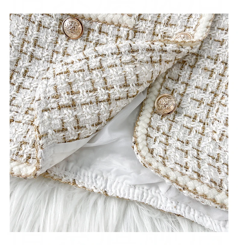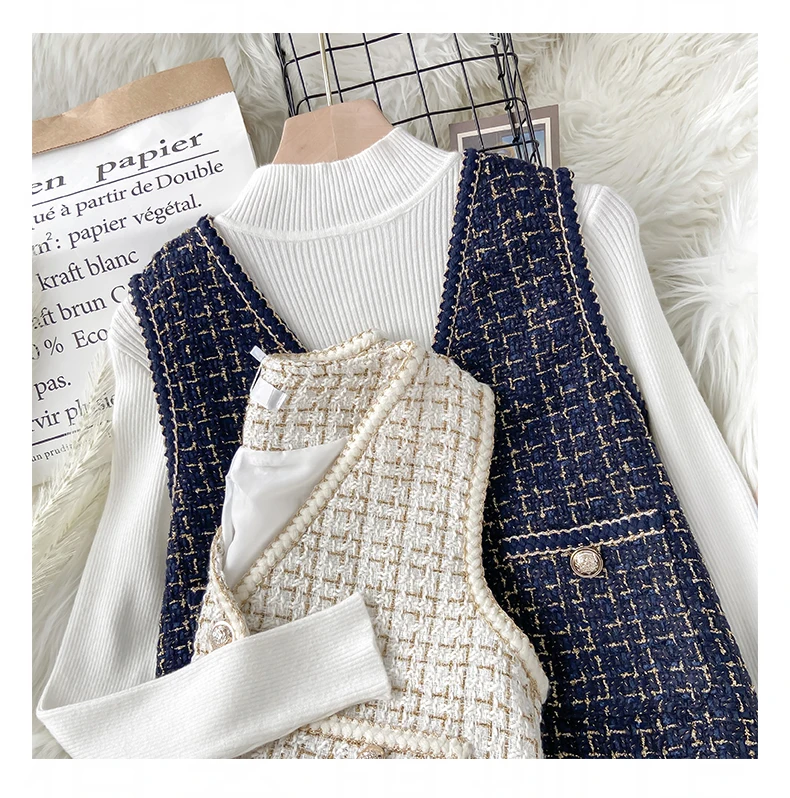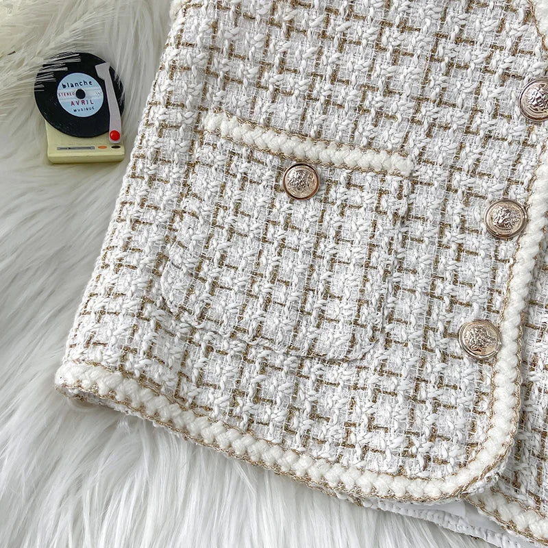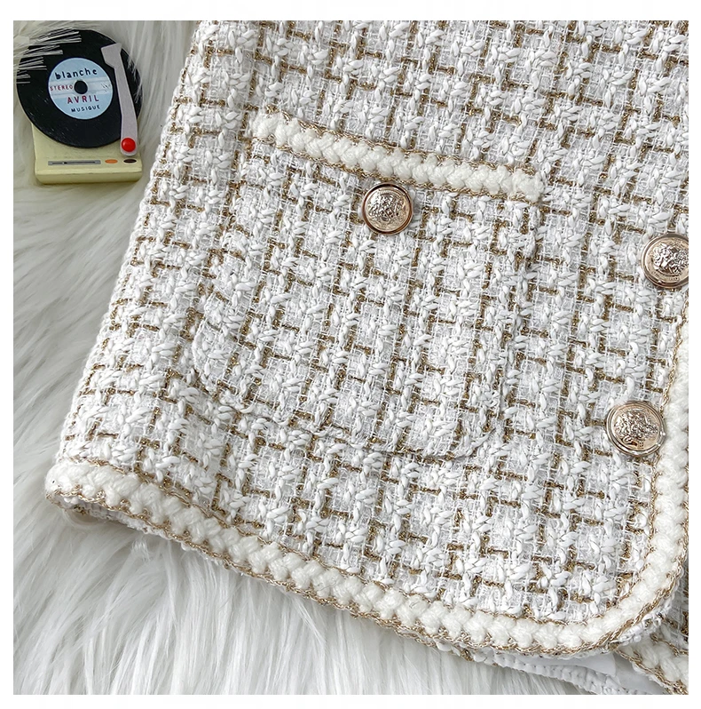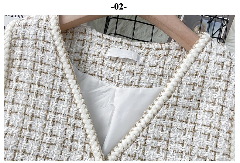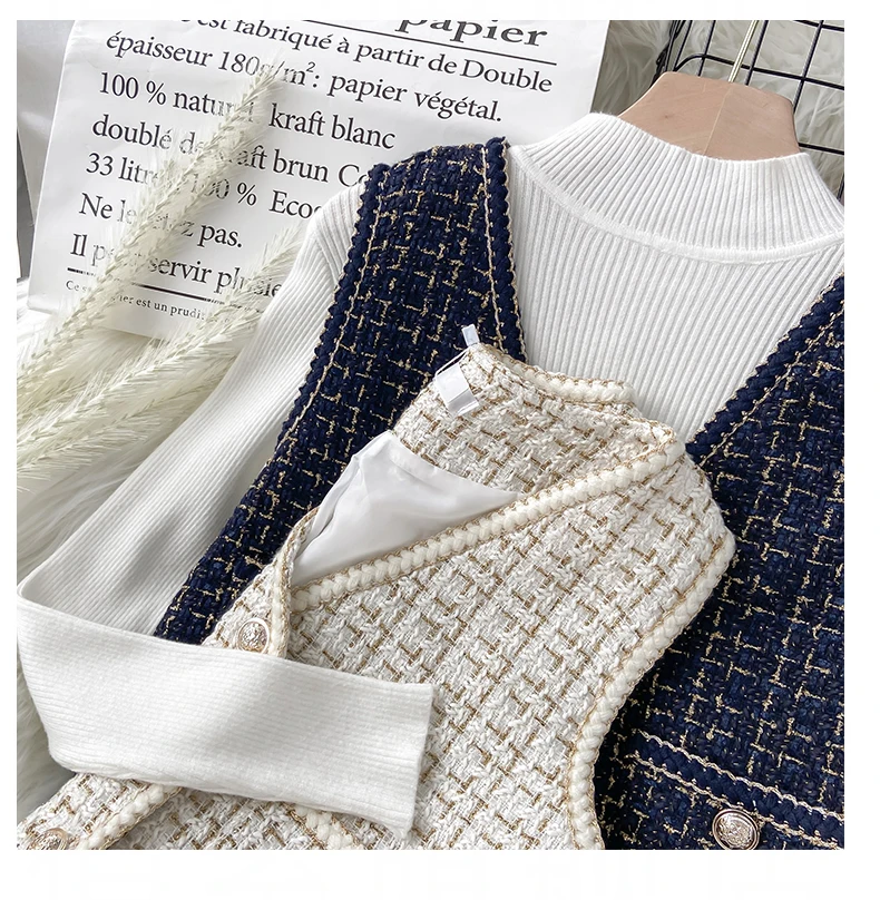 Yipinpay Women New Autumn Tweed Elegant Vintag Vest V-neck Sleeveless Slim Pockets Waistcoat Ladies Fashion Womens Short Small Vest