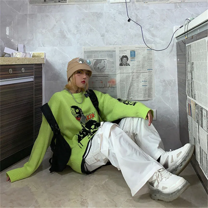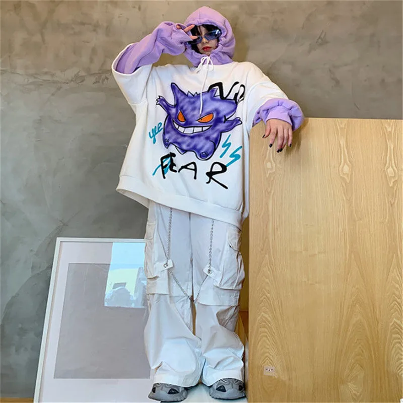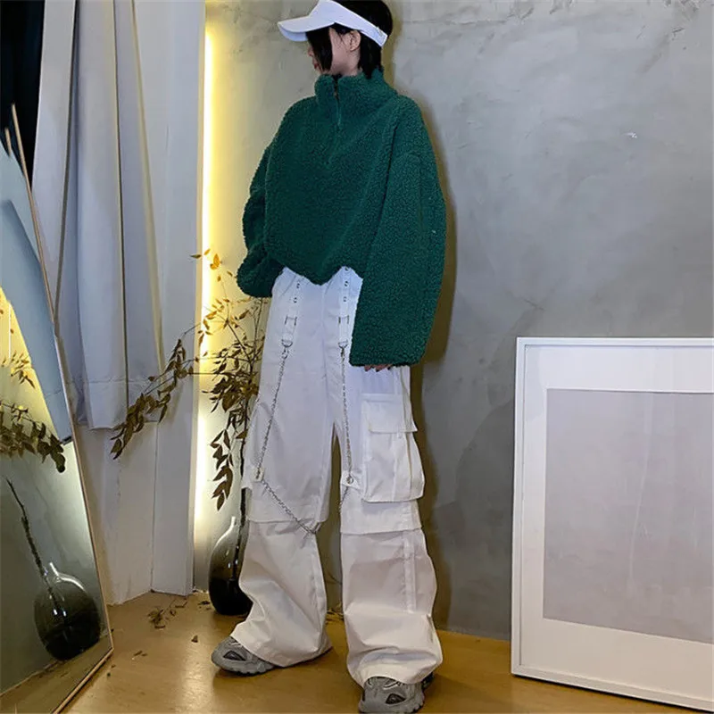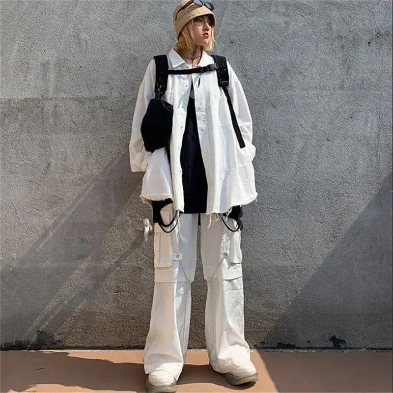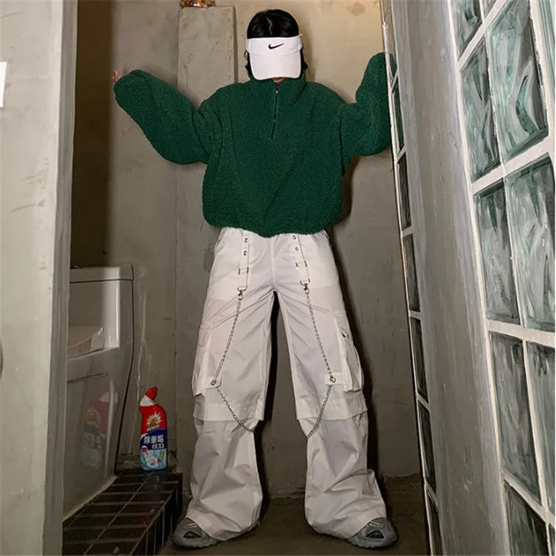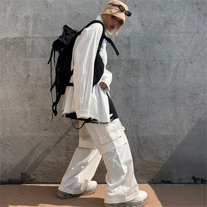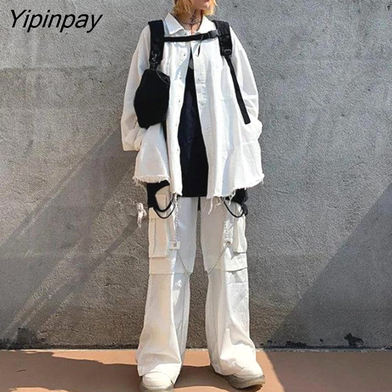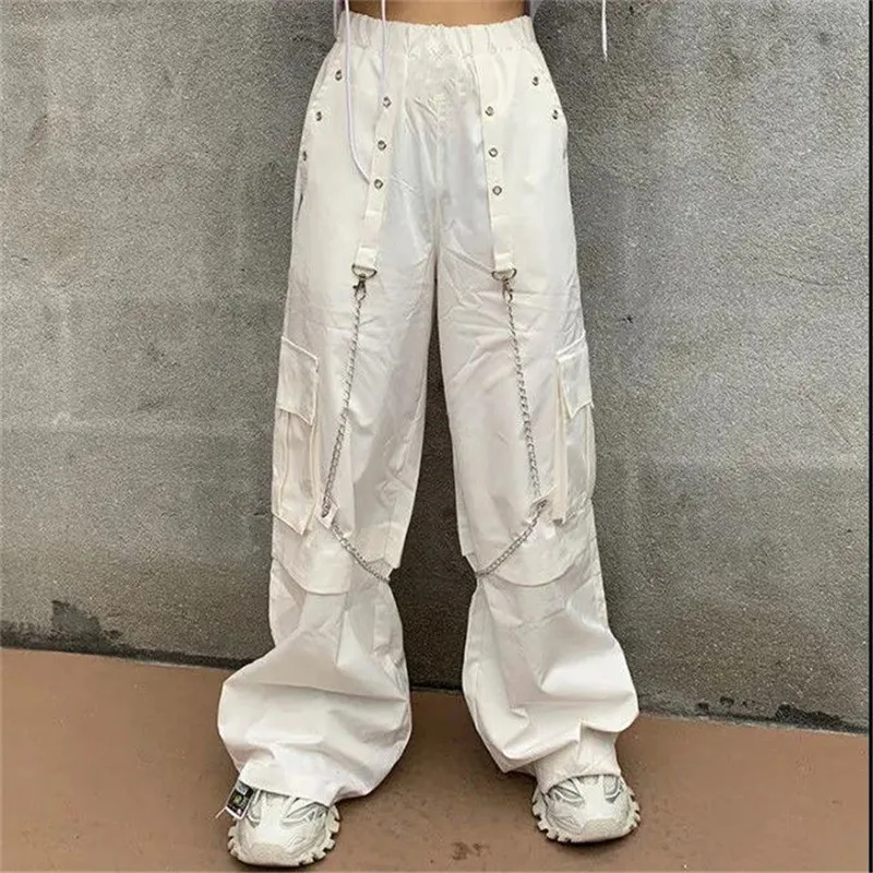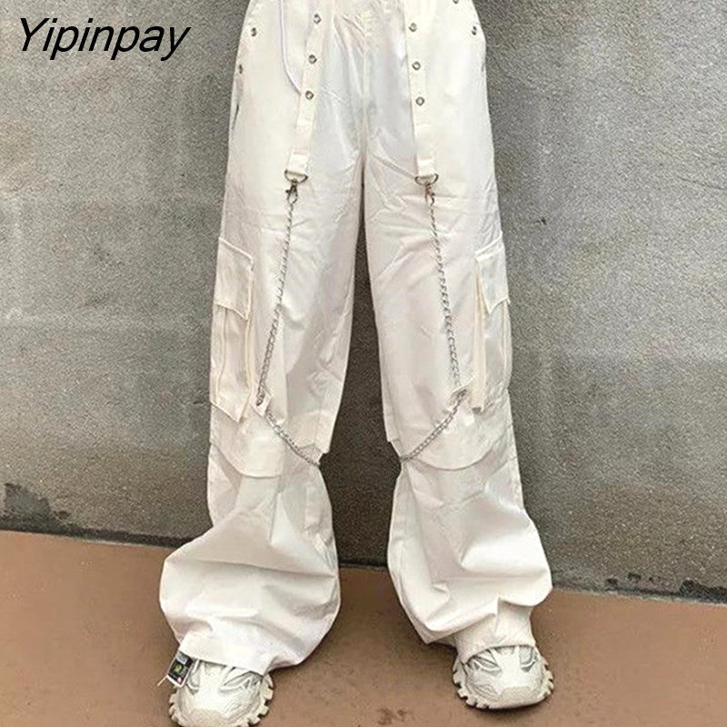 Yipinpay Women pants Harajuku Oversize high street style white Cargo pants fashion pants for women with chain causal female pants