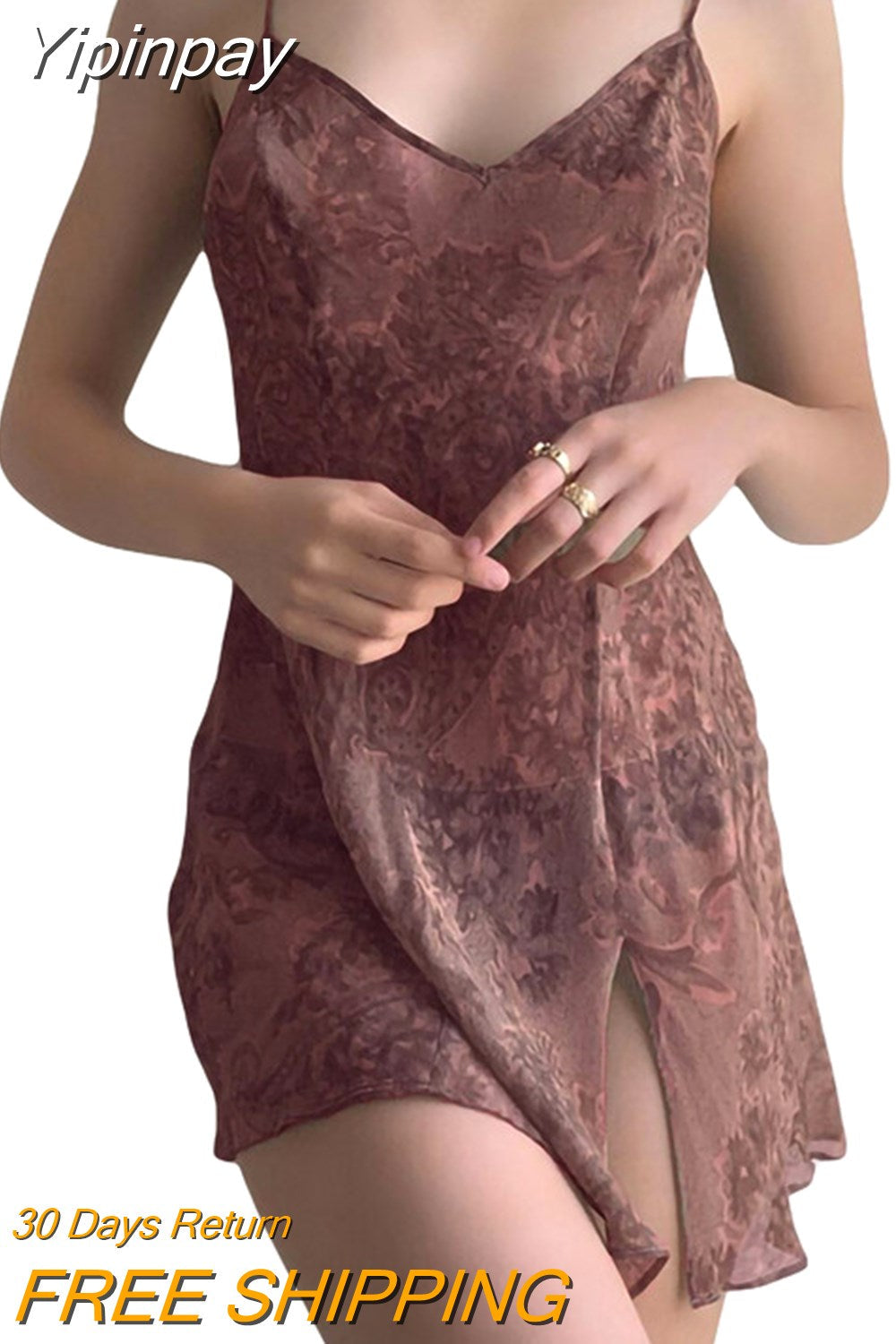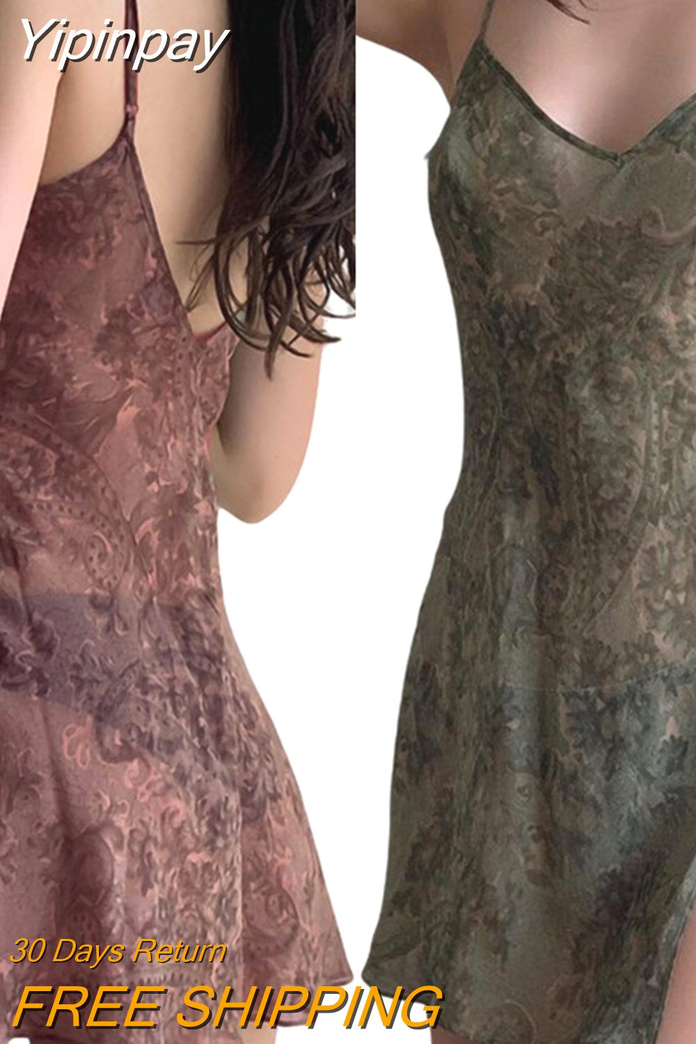 Yipinpay Women Perspective Slip Short Dresses Summer Clothes 2023 y2k Plant Sleeveless Backless Cheap Casual Sexy Dress Club Streetwear