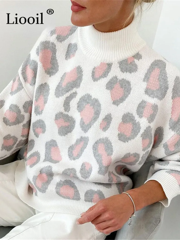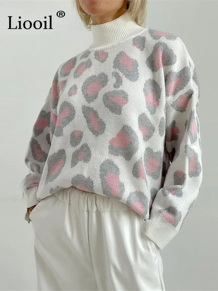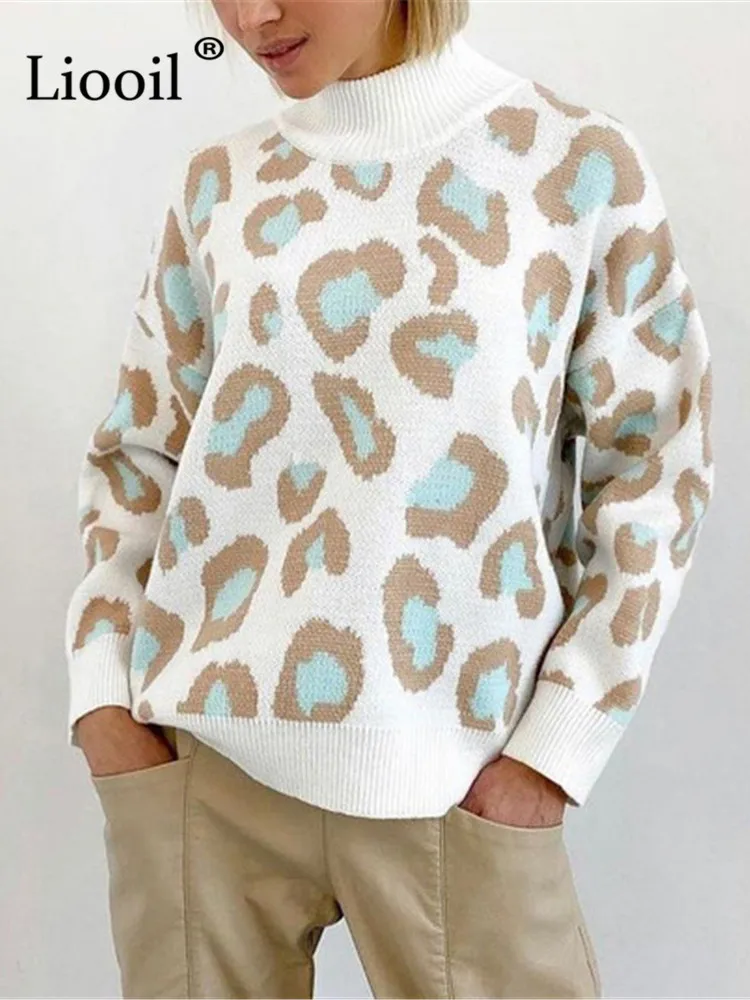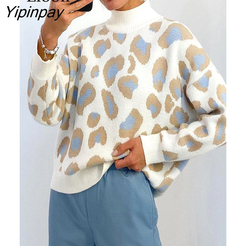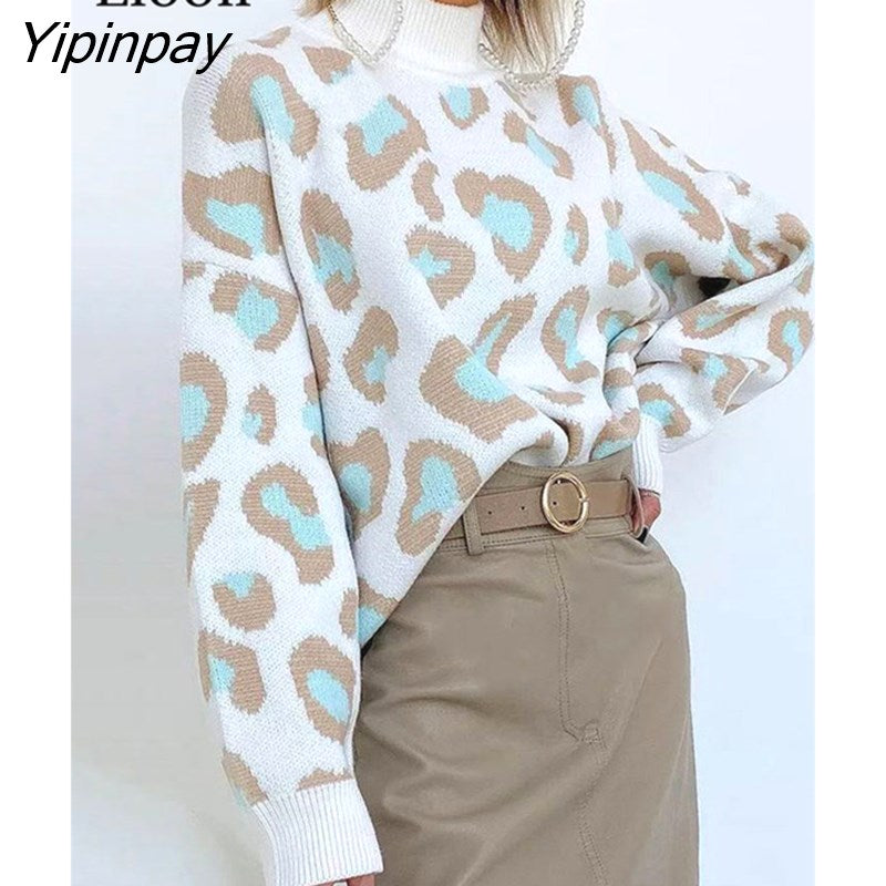 Yipinpay Women Print Warm Sweater Turtleneck Knitting Thick Pullovers Tops Female Jumpers Autumn Winter Streetwear Loose Knit Sweaters