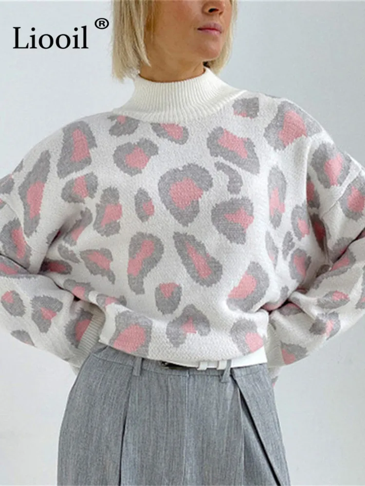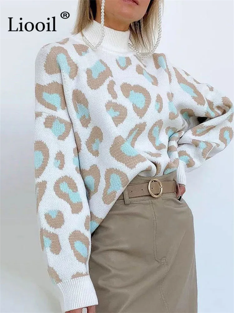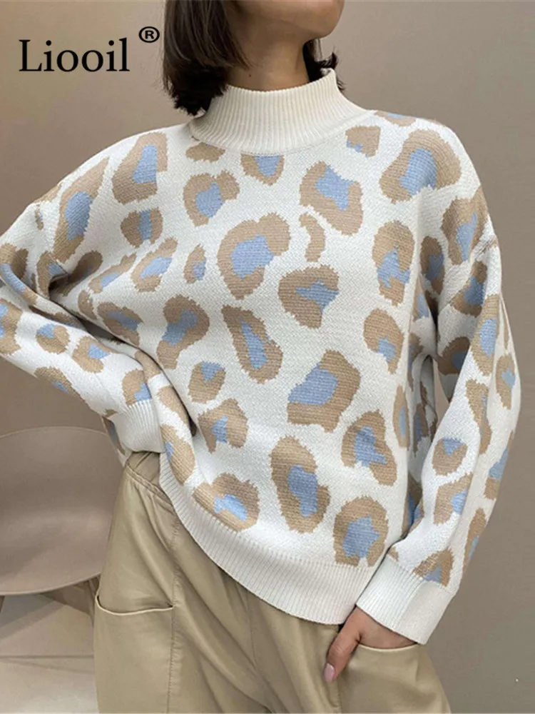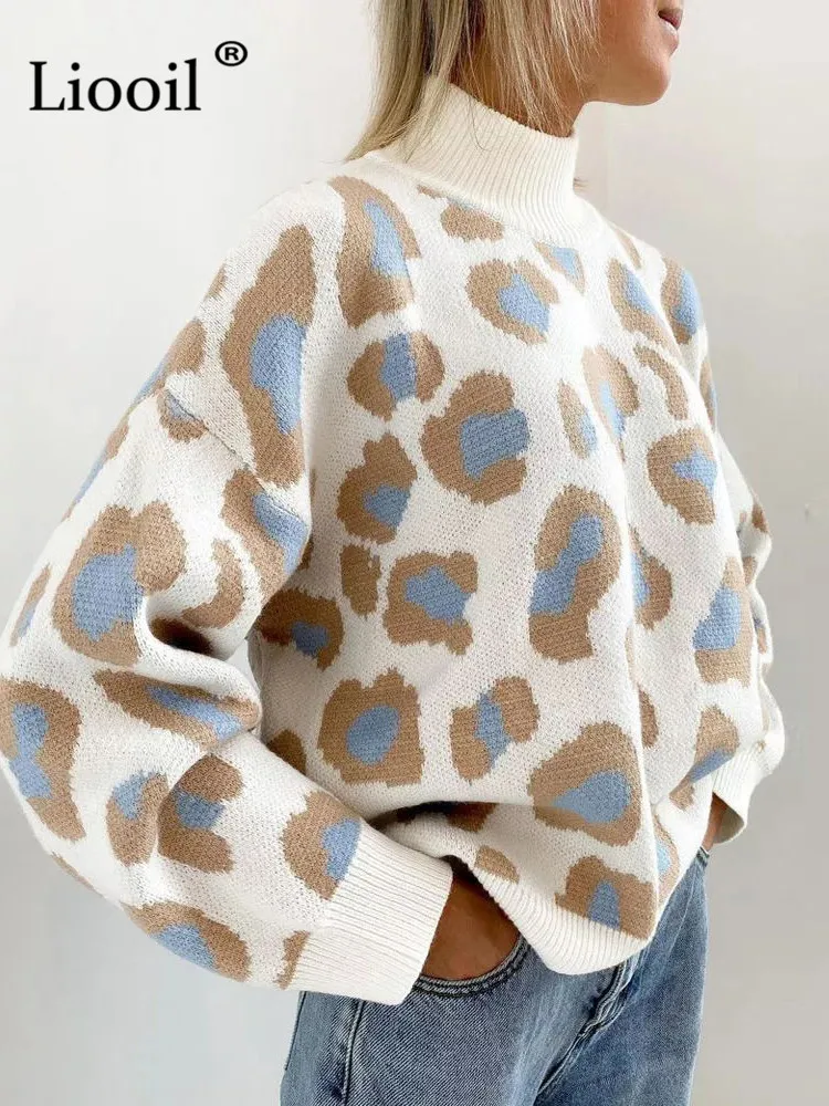 Yipinpay Women Print Warm Sweater Turtleneck Knitting Thick Pullovers Tops Female Jumpers Autumn Winter Streetwear Loose Knit Sweaters