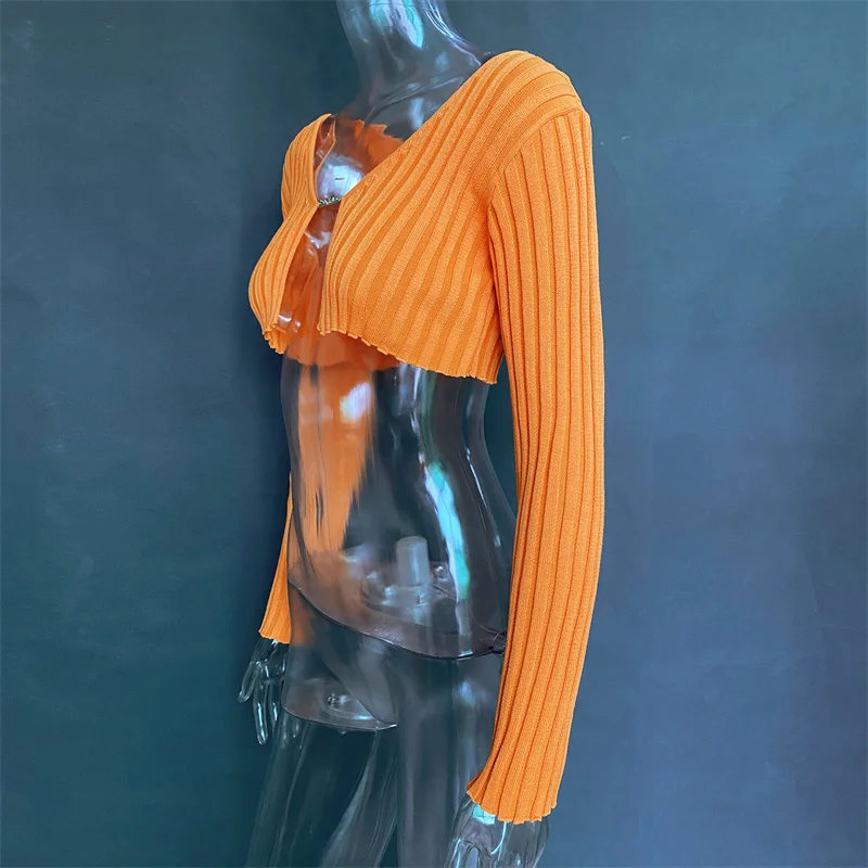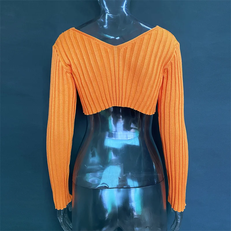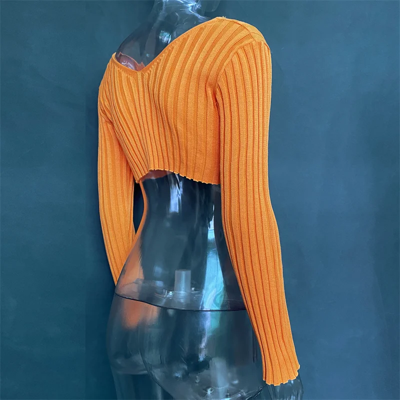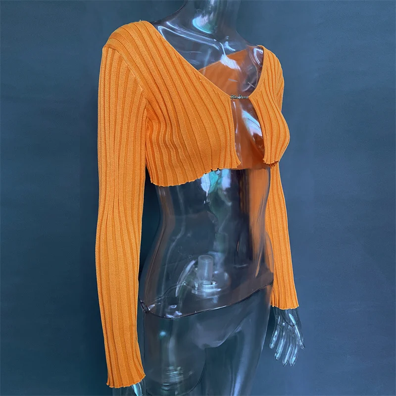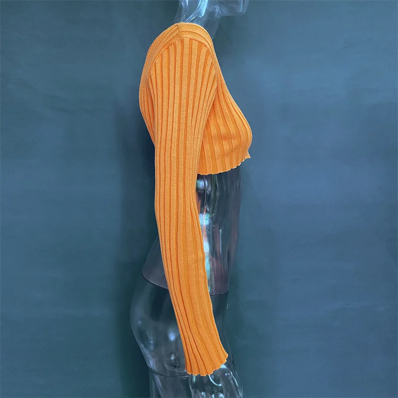 Yipinpay Women Ribbed Knit Cropped Tops Sexy Knitted Long Sleeve Cardigan Sweaters for Ladies Casual Shirts Pullovers Spring 2024
