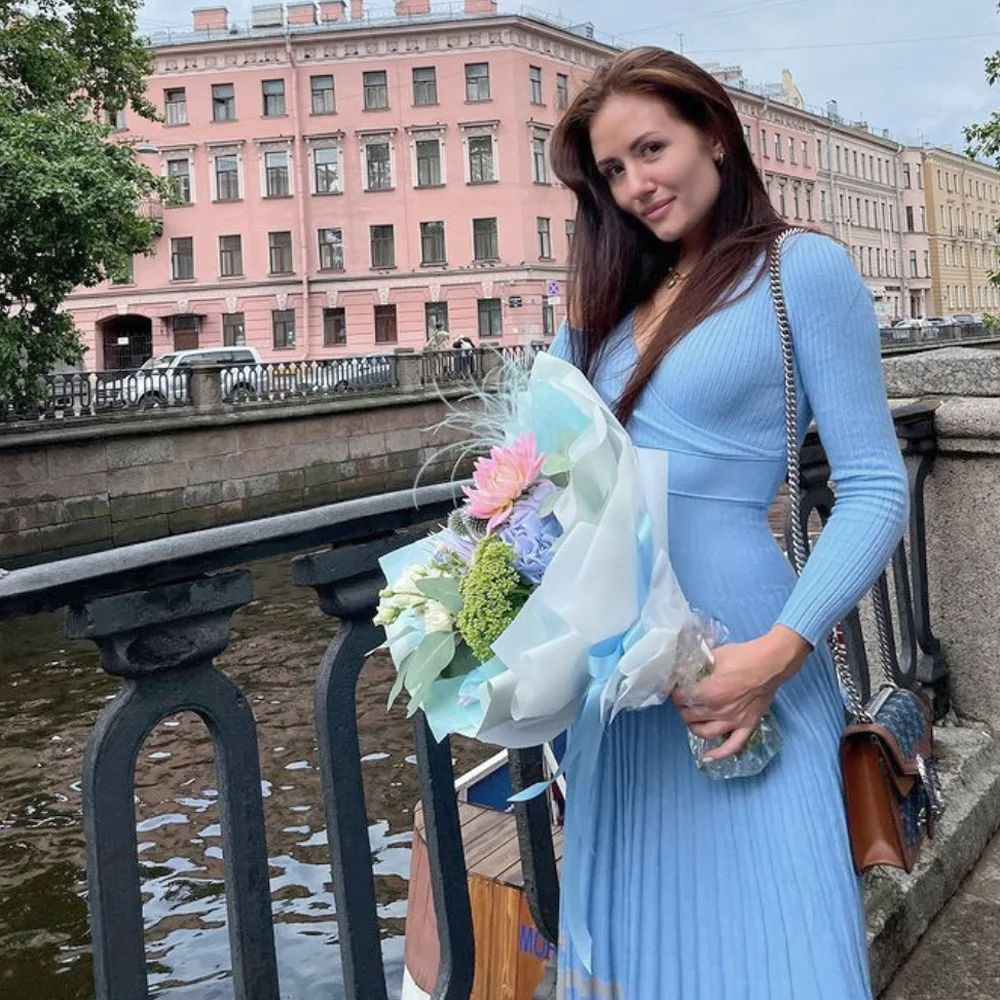 Yipinpay Women Ribbed V-neck Fold Knitted Max Dress Ladies Skinny Sexy A-line Dresses Two Color Patchwork Elegant Chic Vestidos