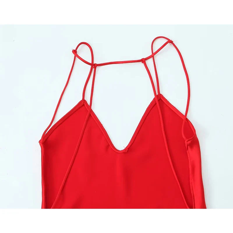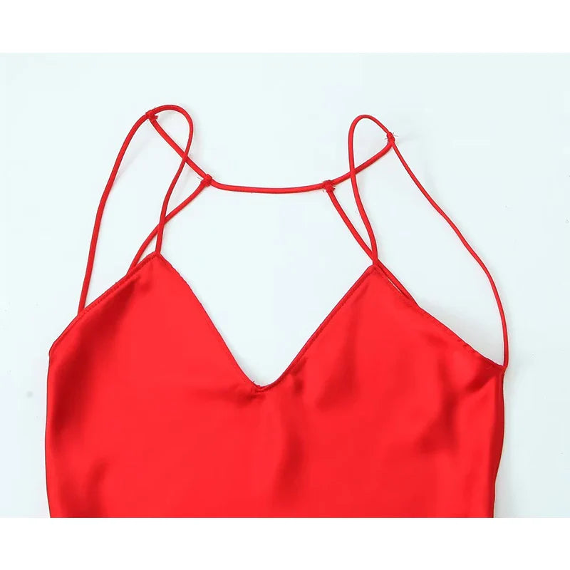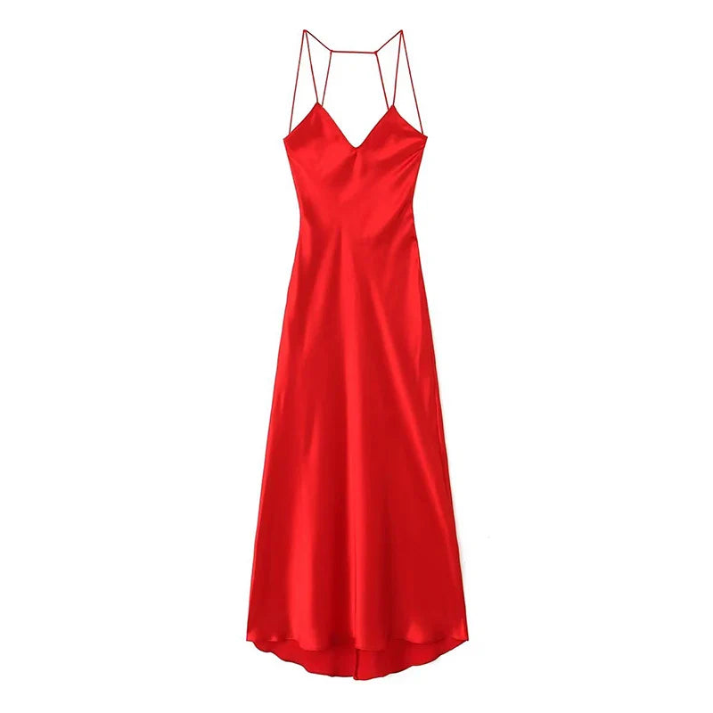 Yipinpay Women Sexy Backless Satin Red Sling Long Dress Christmas Party Vestidos