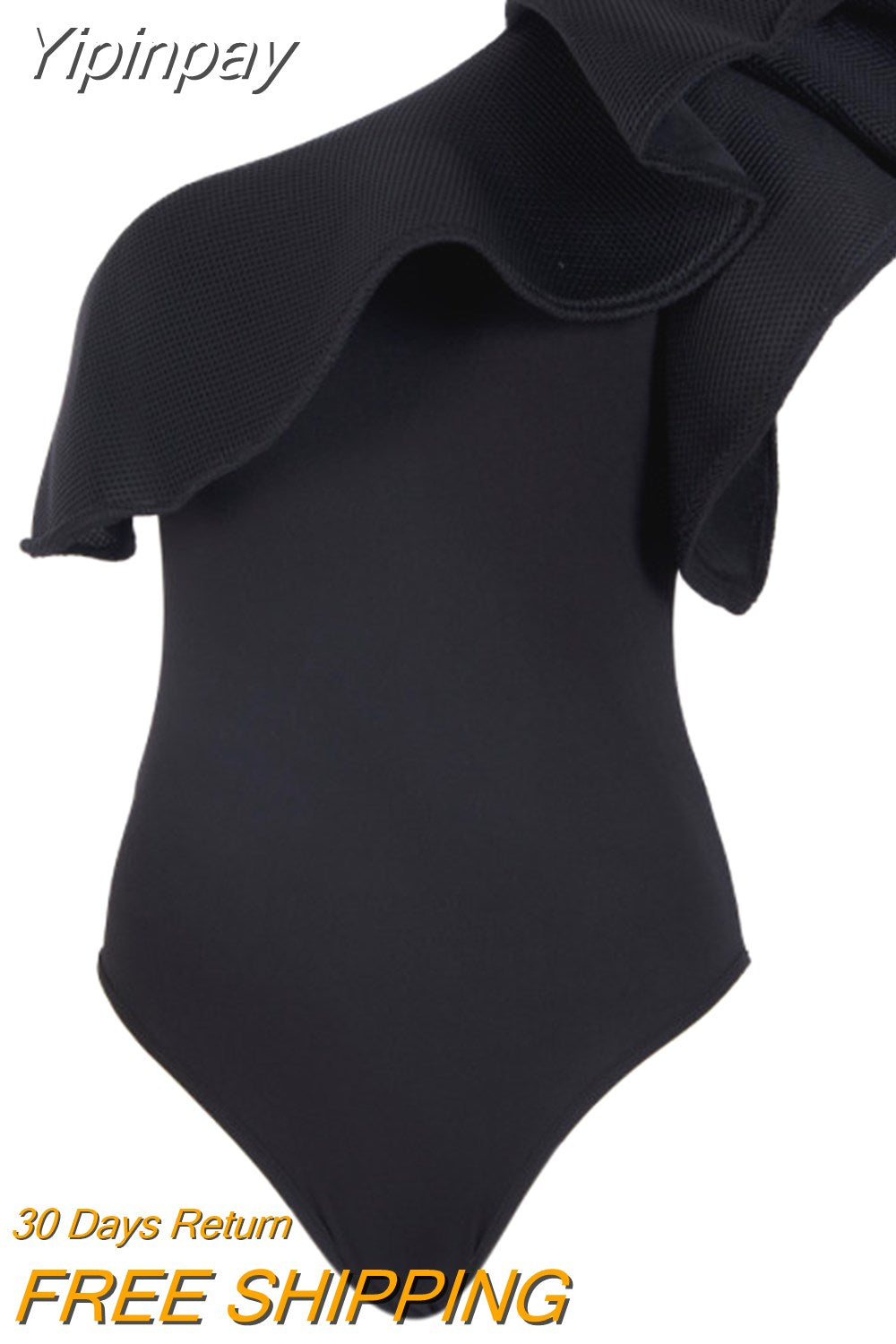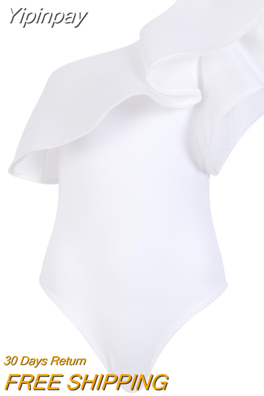 Yipinpay Women Sexy Bodysuit Stretch Leotard Sleeveless Ruffles Slim Evening Party Body Tops T shirt Jumpsuit Romper Summer 2023