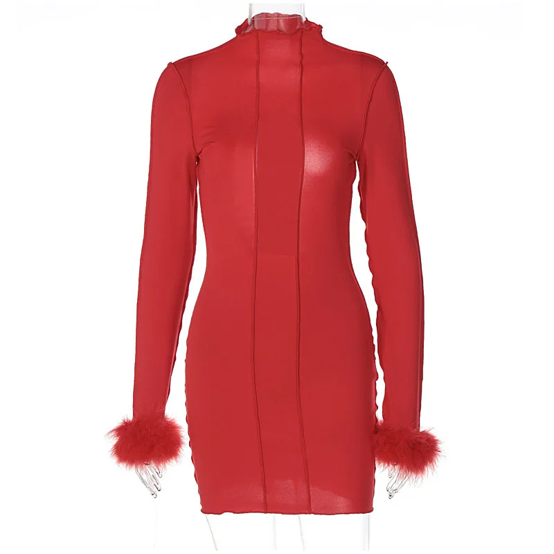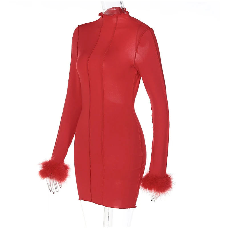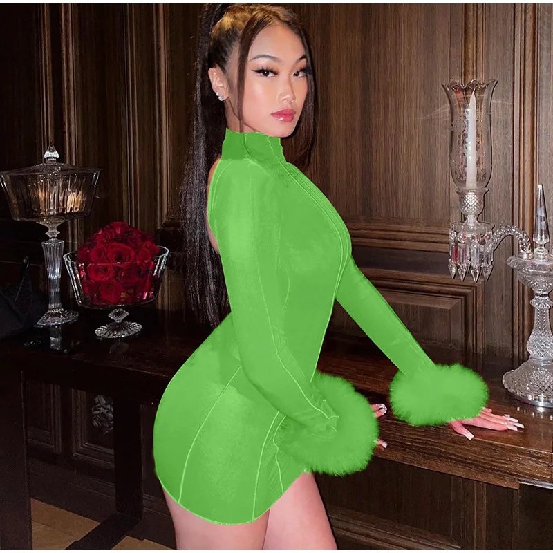 Model Number: Women Sexy Cuff Feather Patchwork Mini Dresses