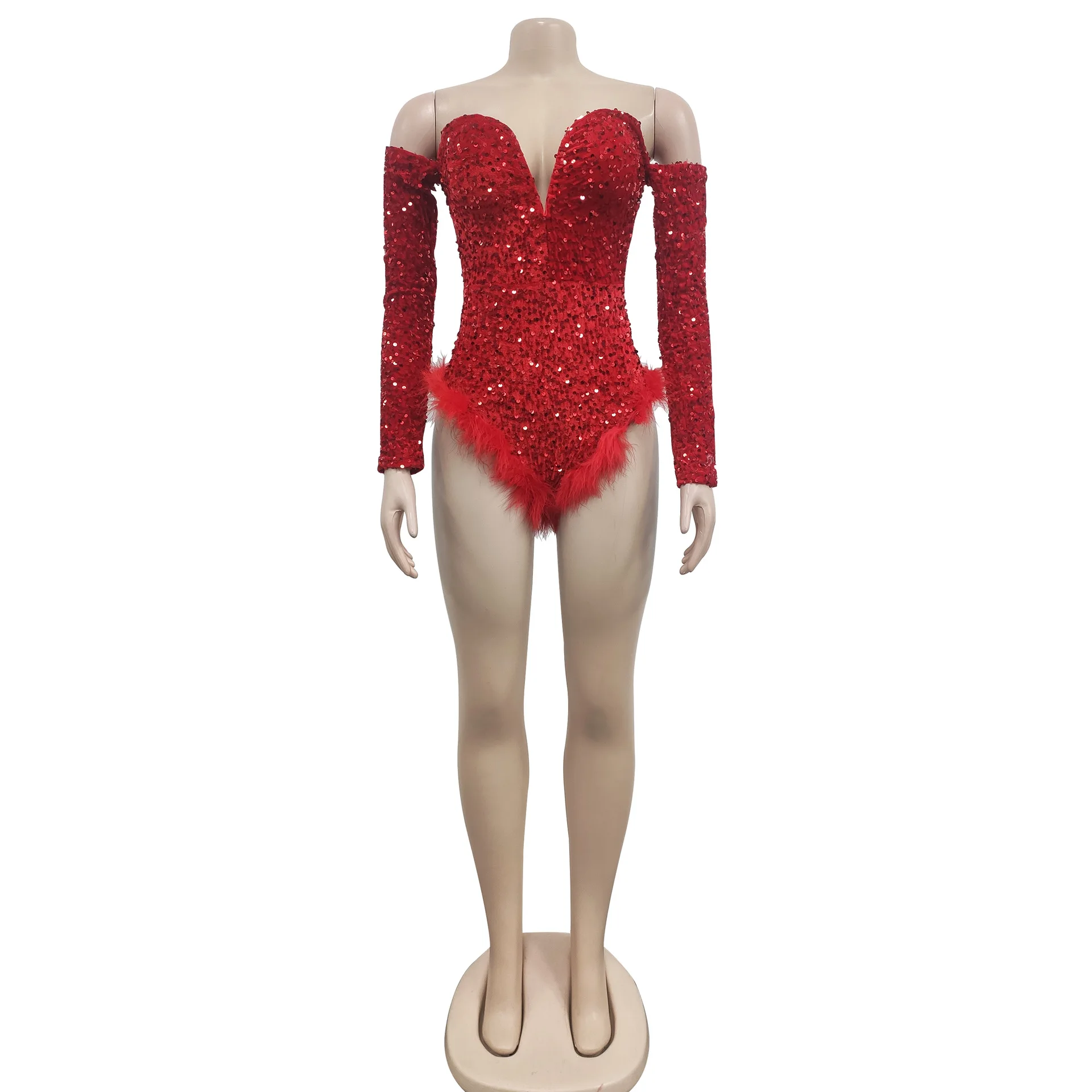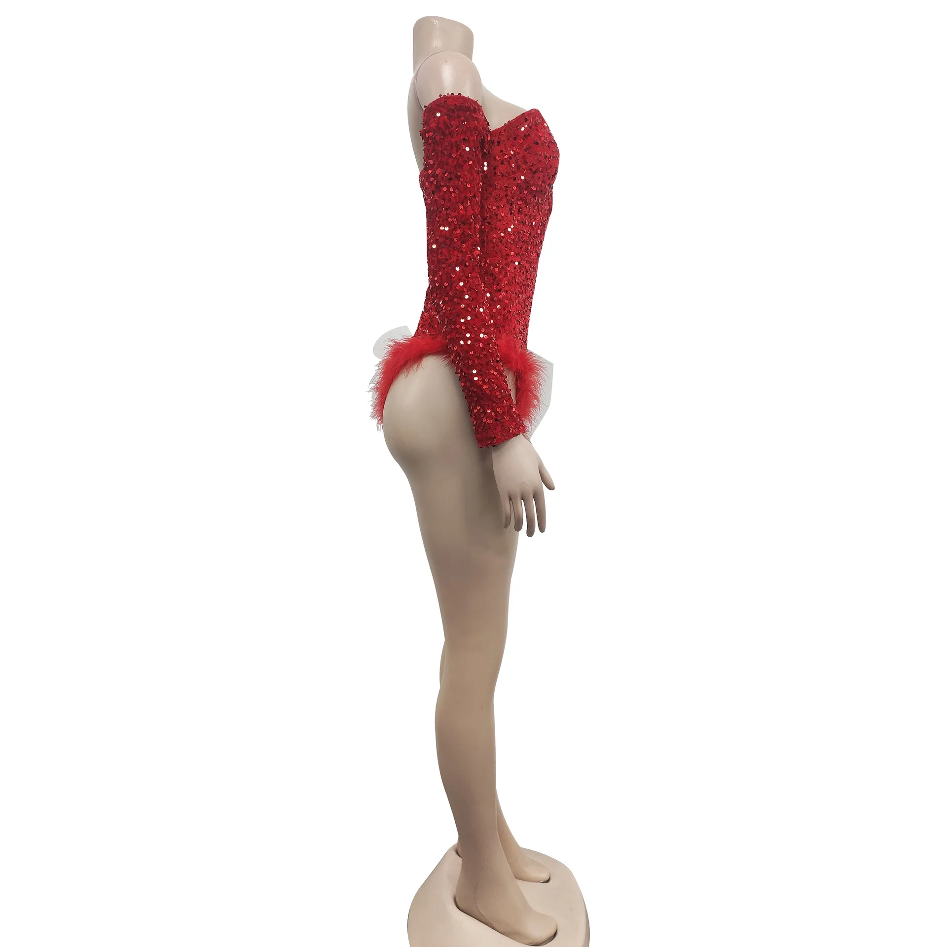 Model Number: Women Sexy Sequined Hem Feather Bodysuits
