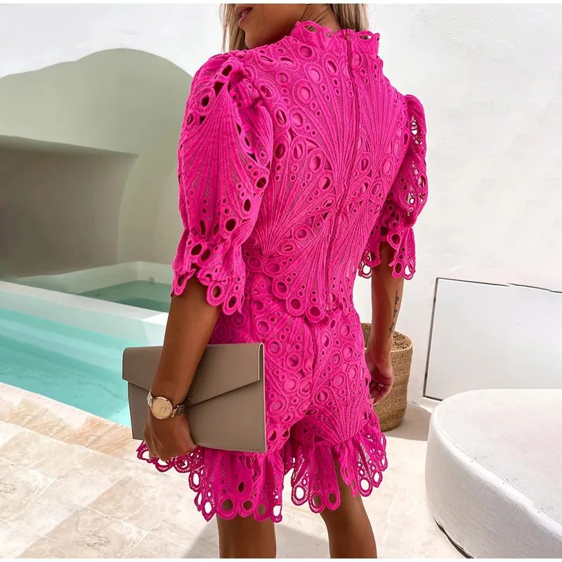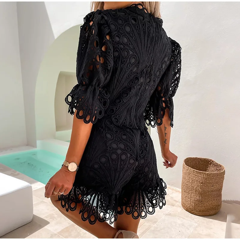 Model Number: Women Sexy Slim Lace Hollow Out Crop Top And Ruffles Shorts Set