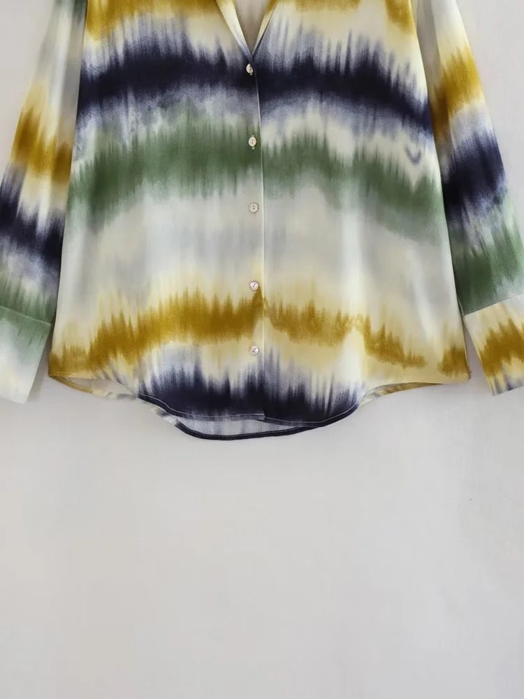 Yipinpay Women Shirts And Blouses Tie Dye Button Up Shirt Women Loose Summer Fashion Woman Blouse 2023 Streetwear Long Sleeve Top