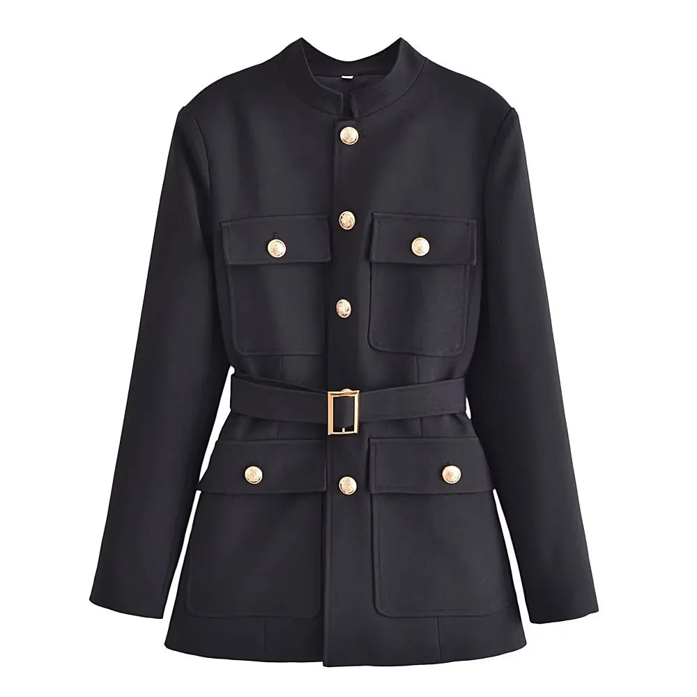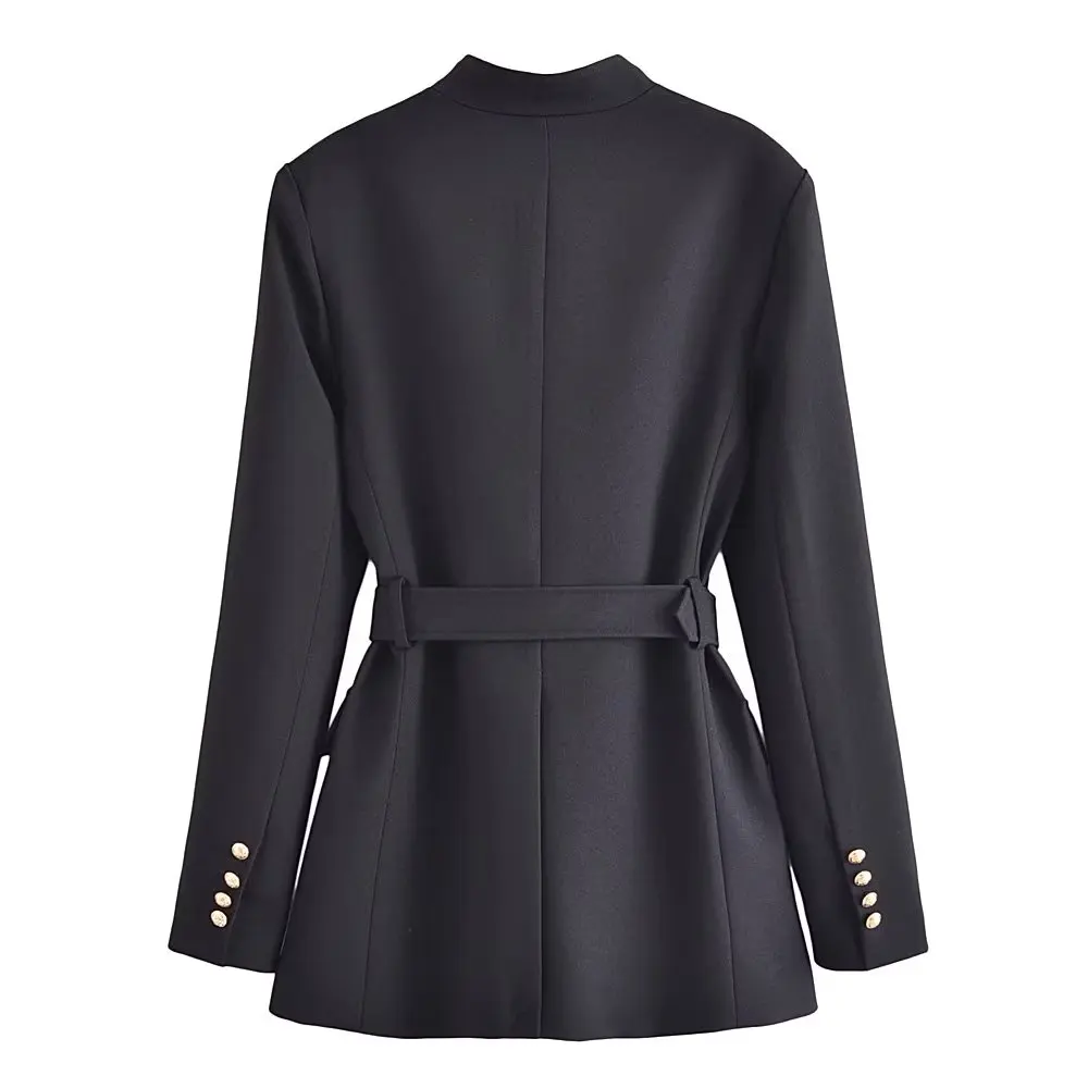 Yipinpay Women Single Breasted Blazer Coat With Belt 2023 Autumn Vintage Long Sleeve Flap Pockets Female Outerwear Chic Vestes Femme