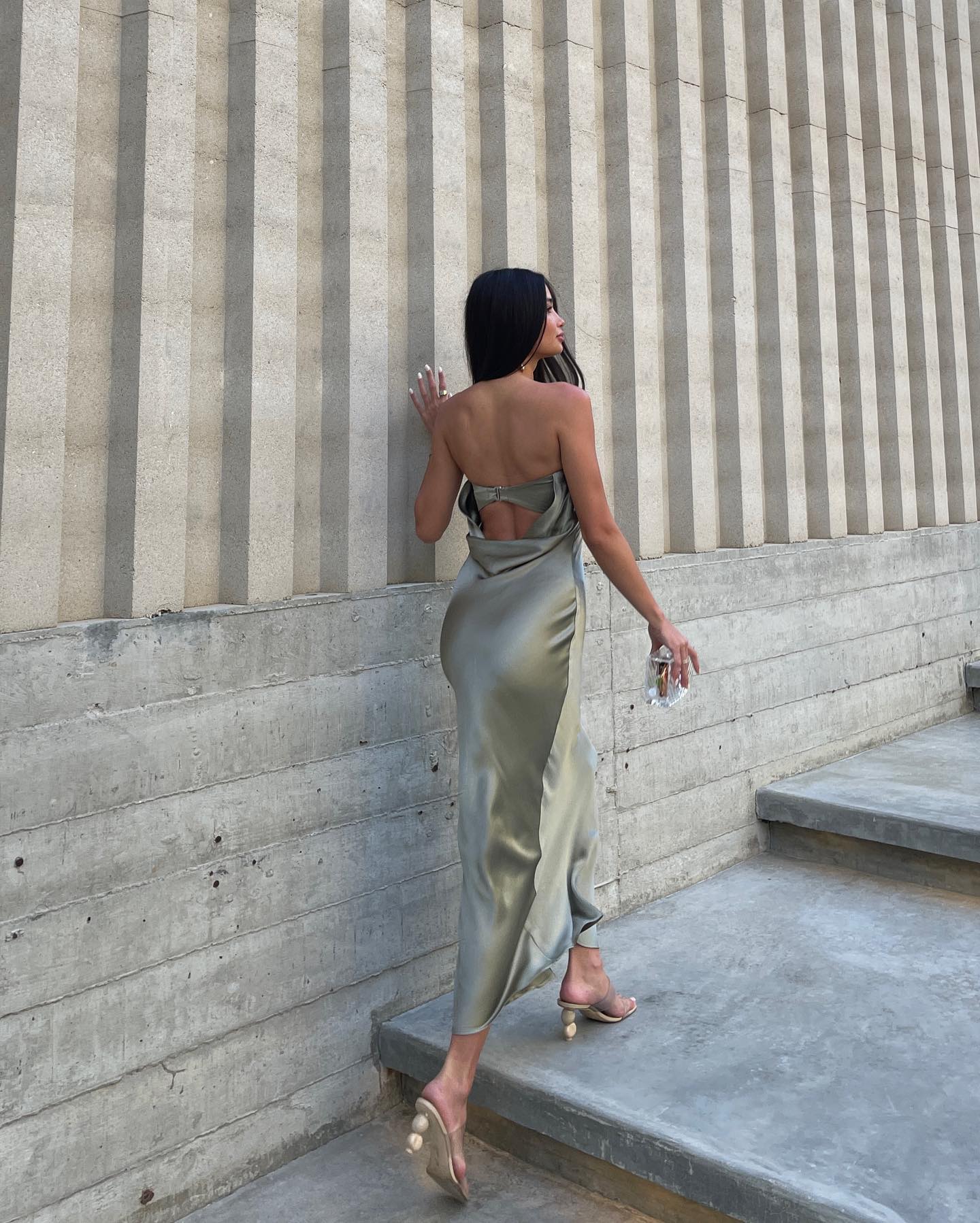 Yipinpay Women Sleeveless Backless Dress Solid Color Strapless Elegant Fashion Cocktail Party Wedding Banquet Dress Street Style S-XL