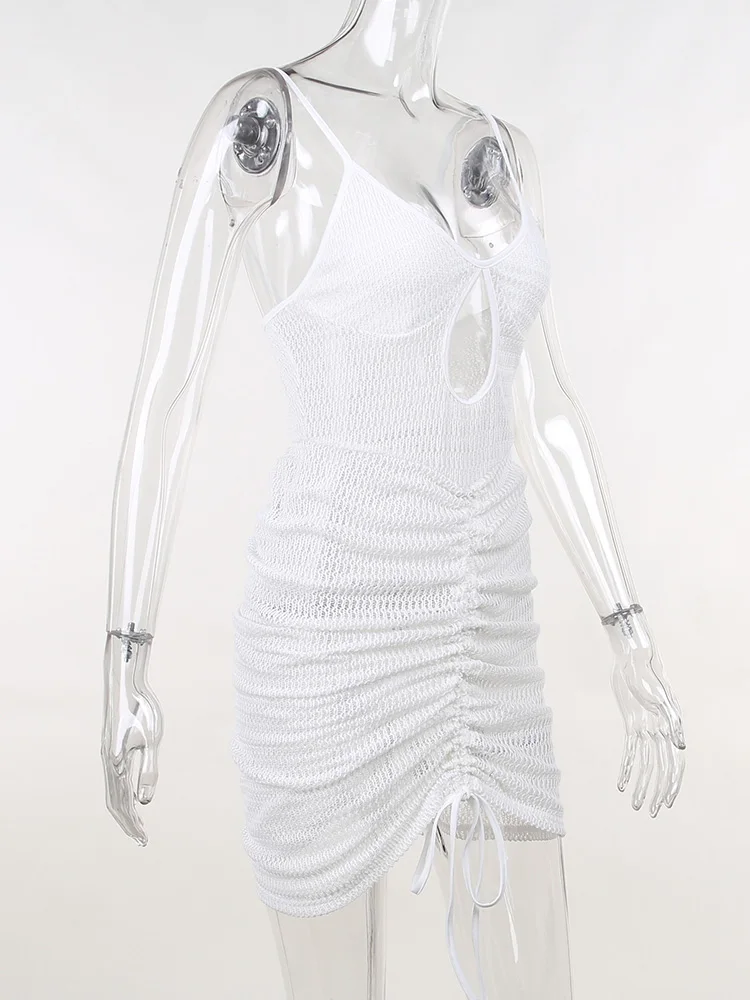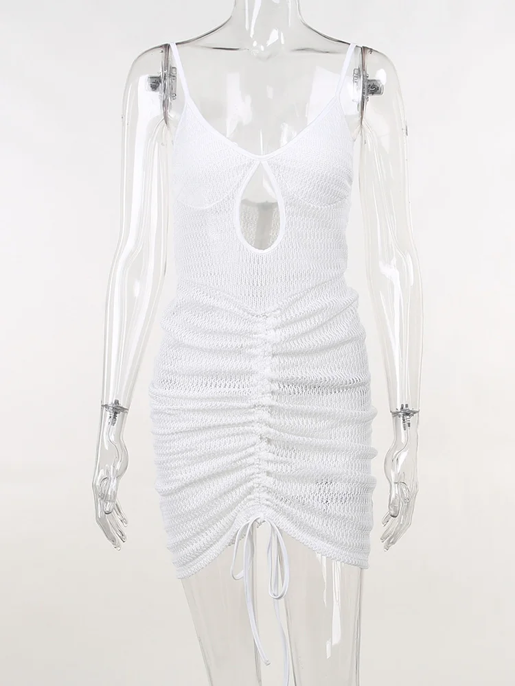 Yipinpay Women Sleeveless Bodycon Dress Summer Cutout Drawstring Ruched Party Dress For Cocktail Nightclub Beach Hot Sale S M L