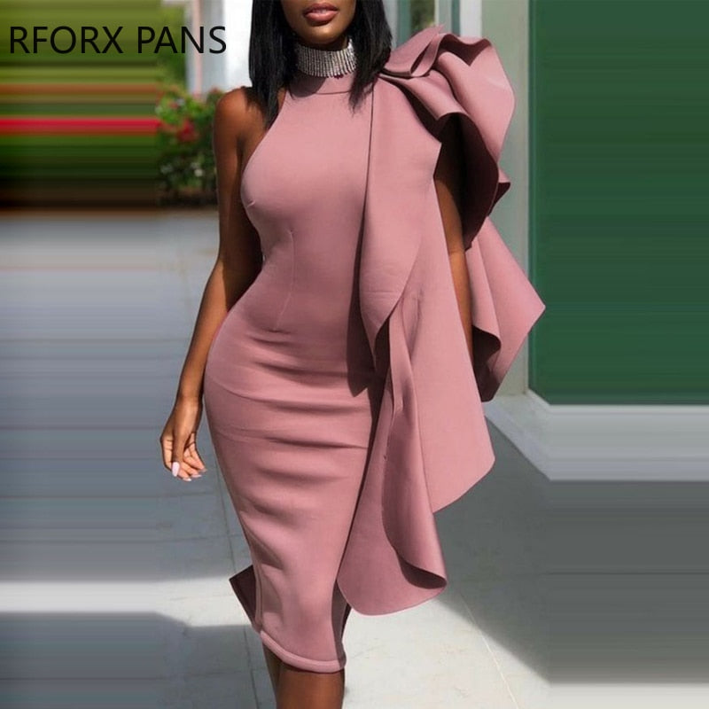 Yipinpay Women Solid Elegant Halter Asymmetrical Ruffle Hem Party Bodycon Banquet Dress