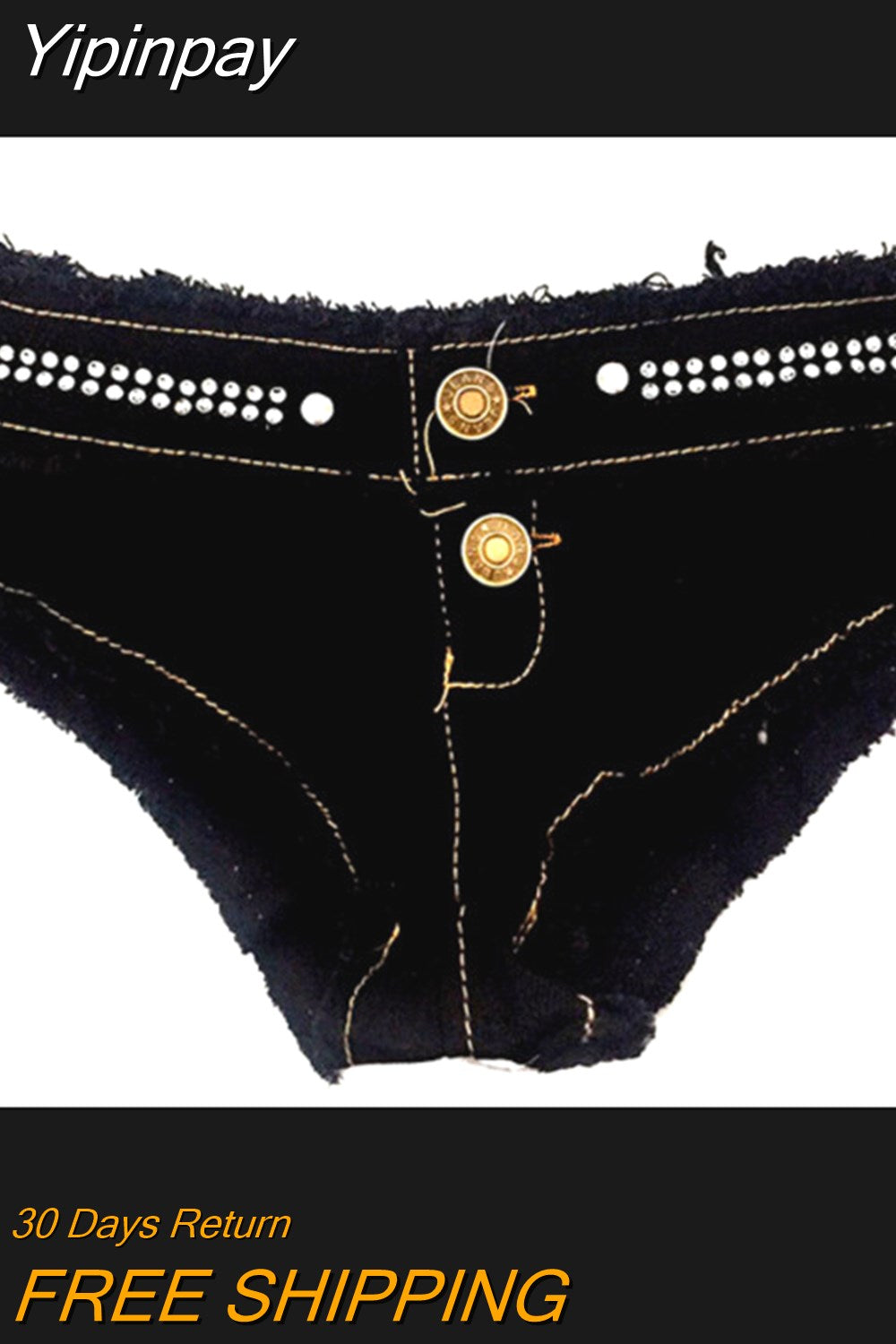 Yipinpay Women Summer Micro Mini Jeans Button Fashion Sexy Shorts Low Rise Trousers Clubwear
