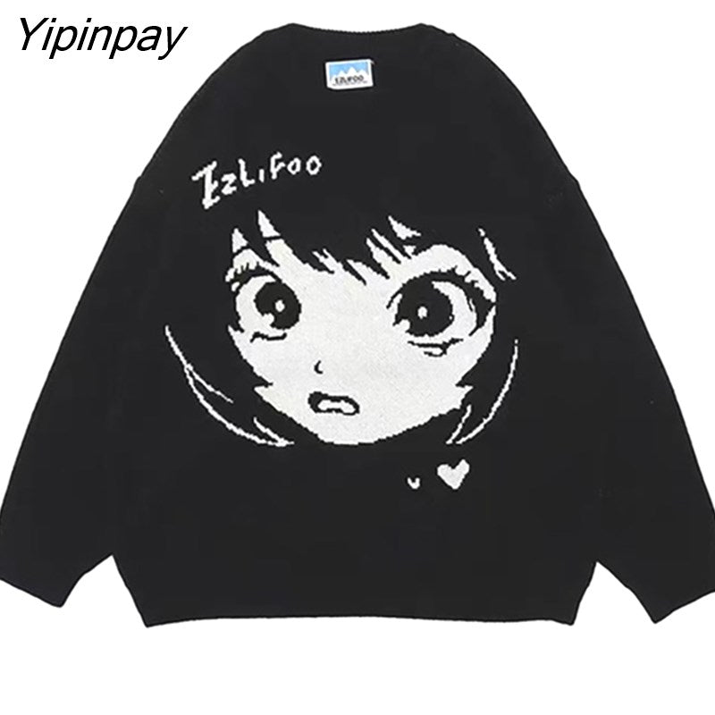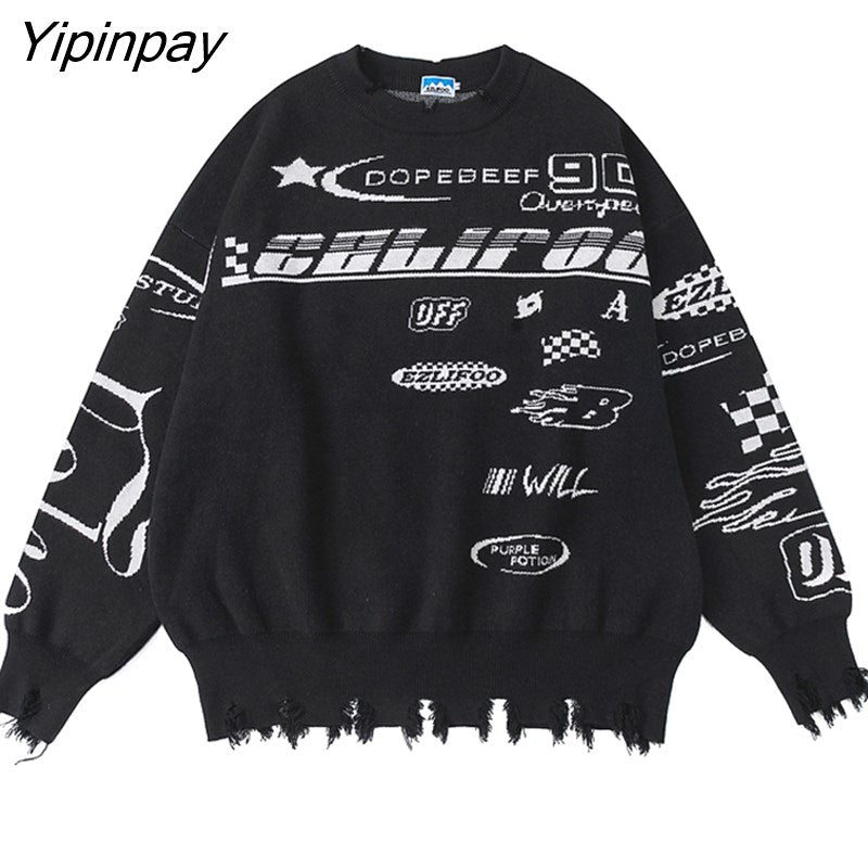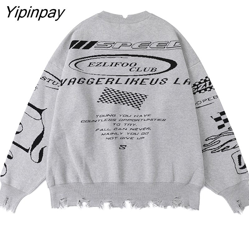 Yipinpay Women Sweater Frayed Oversize Pullover Long Sleeve Jumper Streetwear Korean Fashion Goth Knit Y2k Aesthetic Tops Winter Clothes