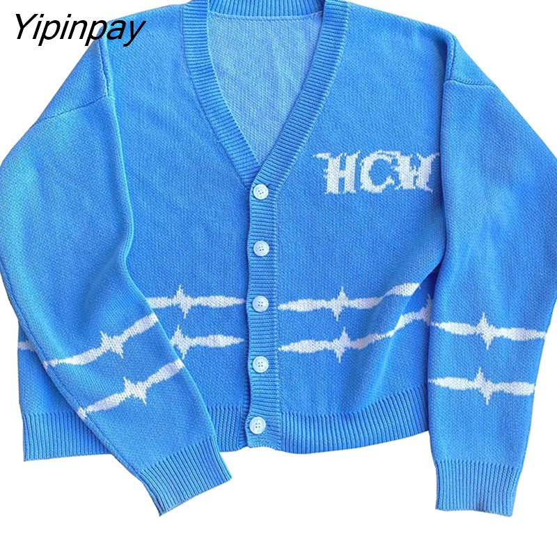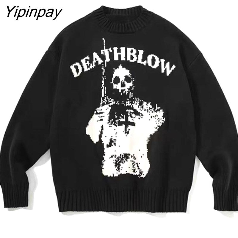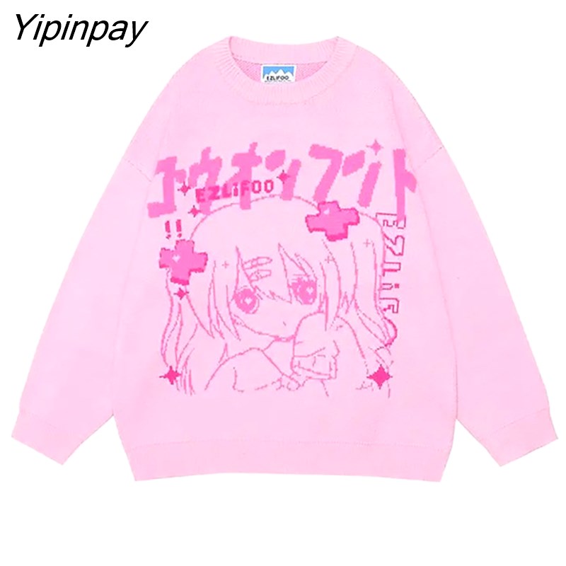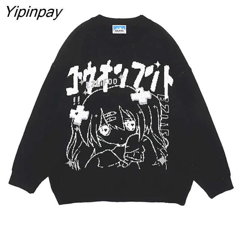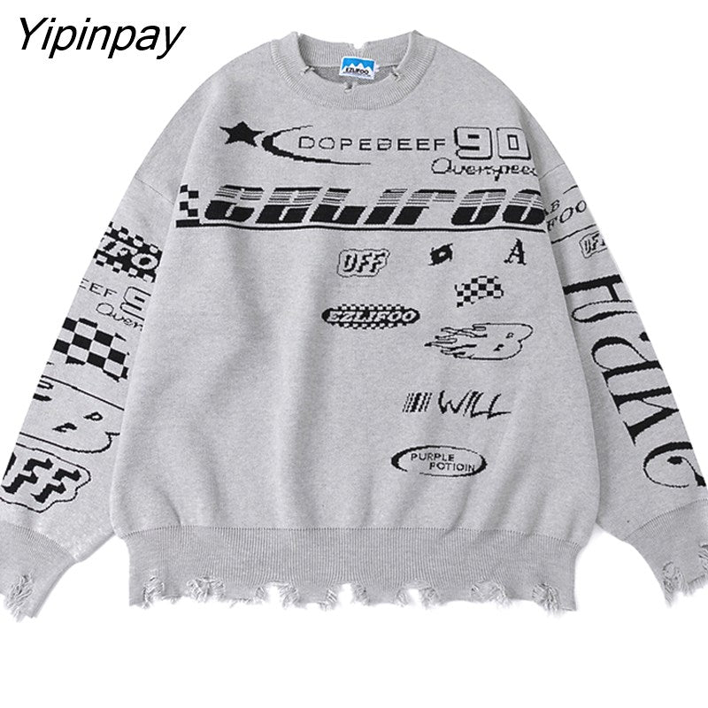 Yipinpay Women Sweater Frayed Oversize Pullover Long Sleeve Jumper Streetwear Korean Fashion Goth Knit Y2k Aesthetic Tops Winter Clothes 319-2