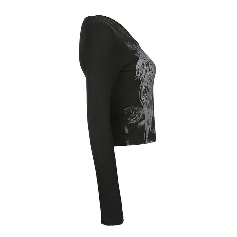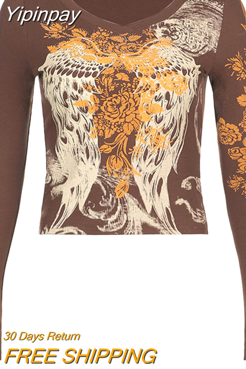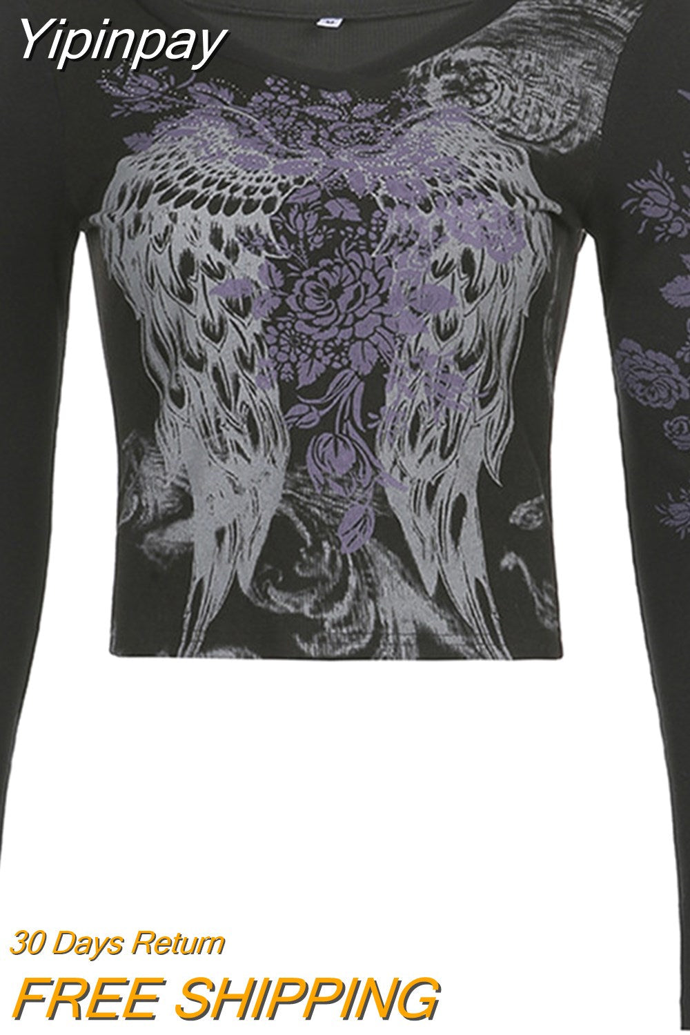 Yipinpay Women T-shirts Fall Winter 2023 Sexy Crop Top Clothes y2k Graphic Fairy Grunge Aesthetic Vintage Long Sleeve Top Streetwear
