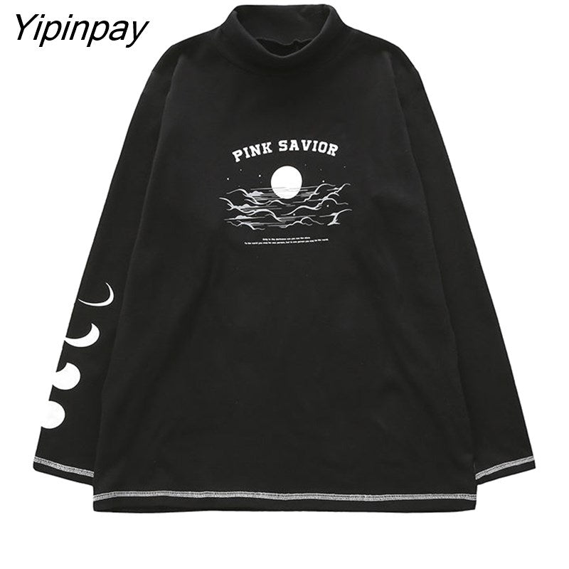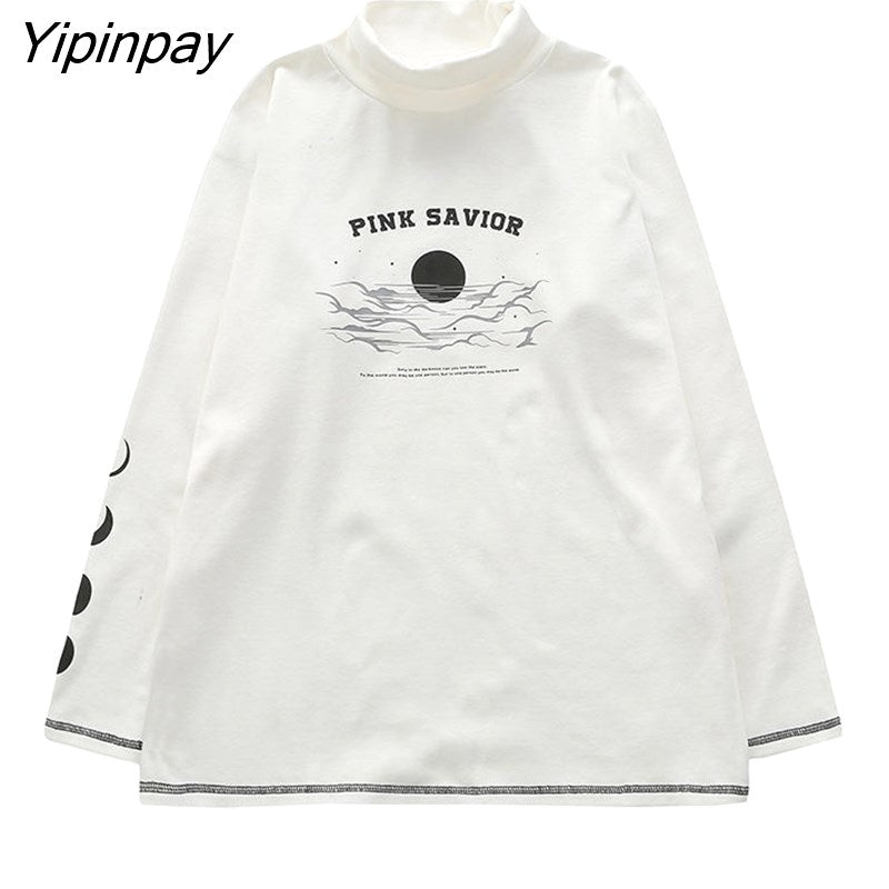 Yipinpay Women T-shirts Long Sleeve Loose Solid 2YK Turtleneck Womens T-shirt All-match Simple Leisure Korean Style Trendy Chic Soft